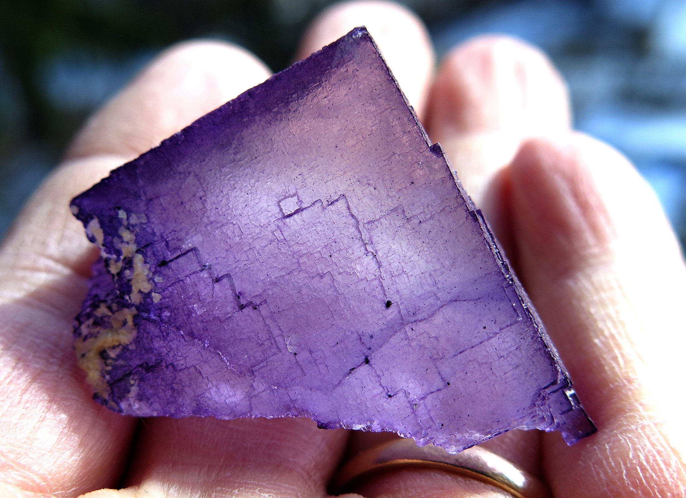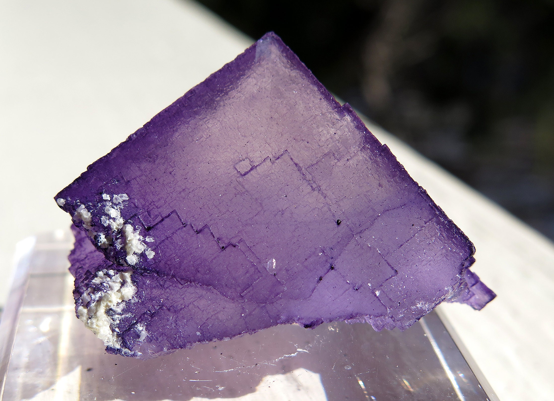 Offering a Complete Crystallized Fluorite crystal. Sharp corners, fully crystallized all around with great color and form. No damage. Elmwood Mine, Carthage, Smith County, Tennessee. 1 7/8 inch across.