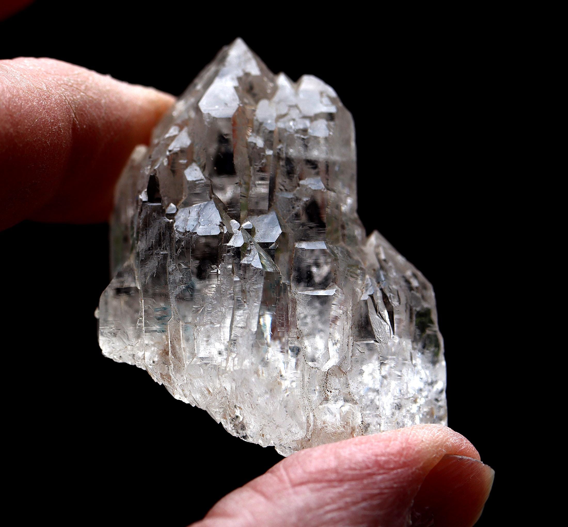 Offering an old collection crystal out of Brazil. An excellent no damage cathedral quartz. Icy clear with the form we look for for a cathedral. This is a floater and is crystallized all around. Sits up perfectly on its own, Nothing broken or chipped. 2 inch tall. Weight: 47.1 grams. We deal in quality, please note the bottom is fully terminated as well (last photo). If you think these are a dime a dozen your wrong. This quality is NOT common. This cathedral is a REAL DEAL!