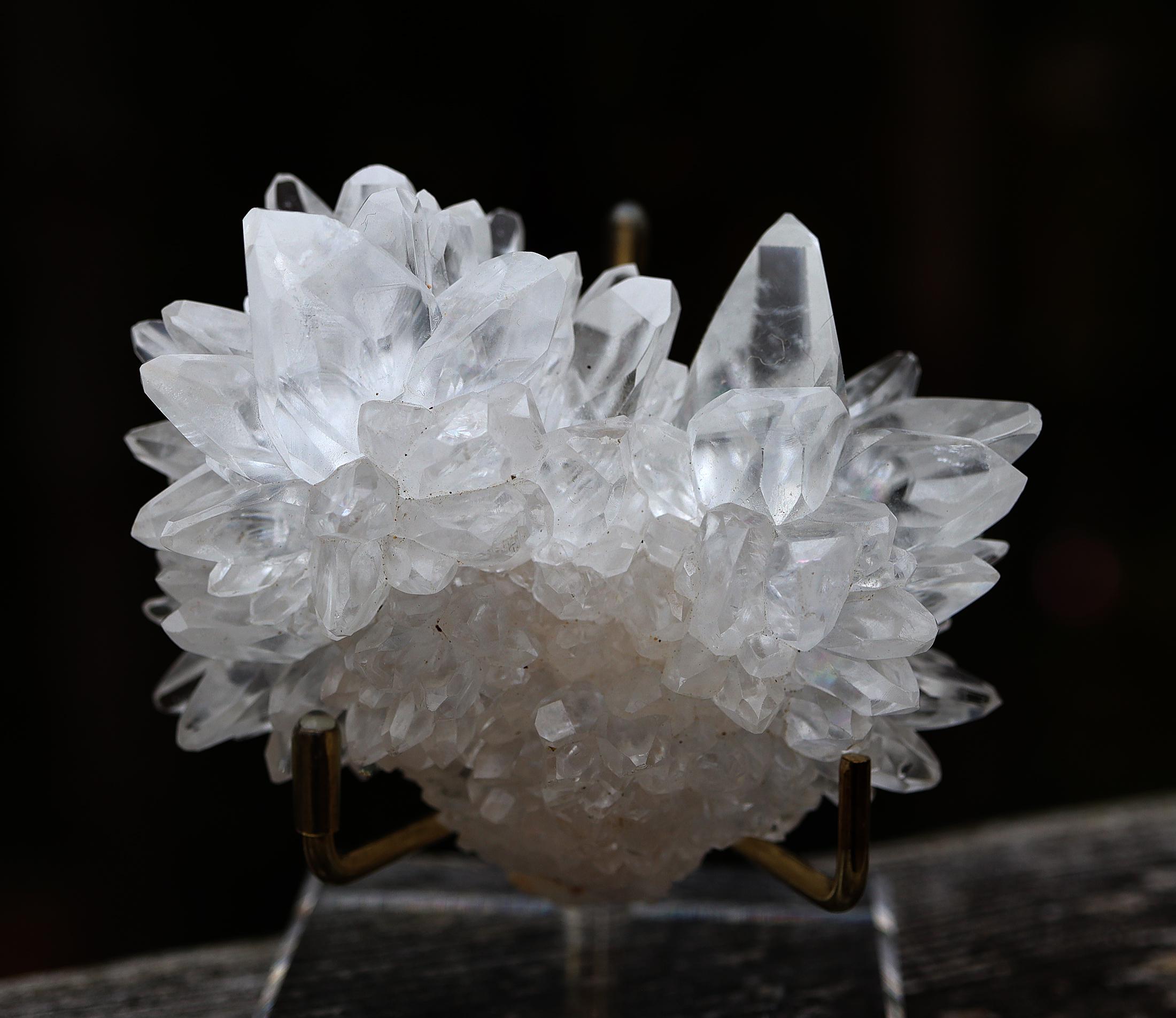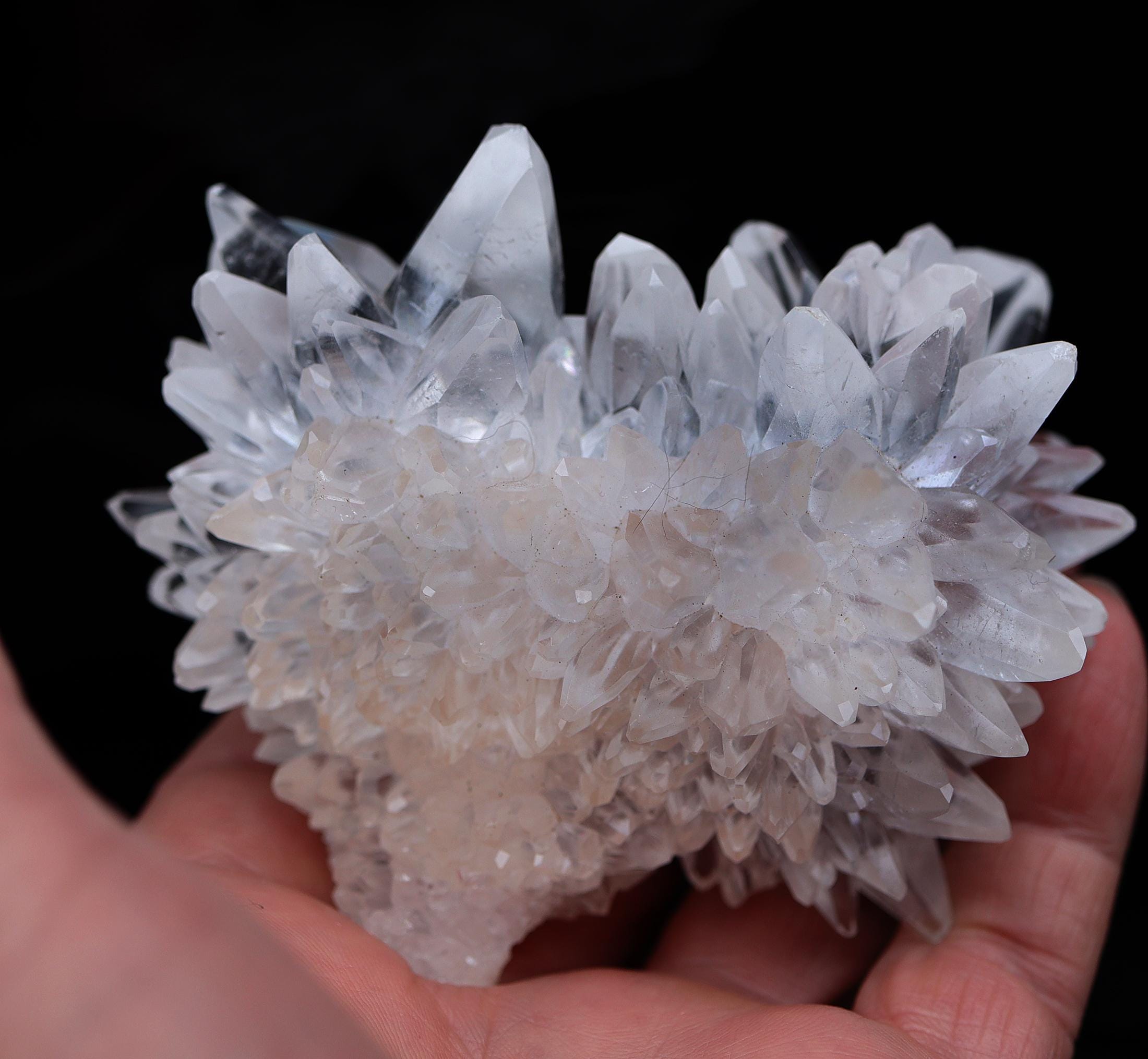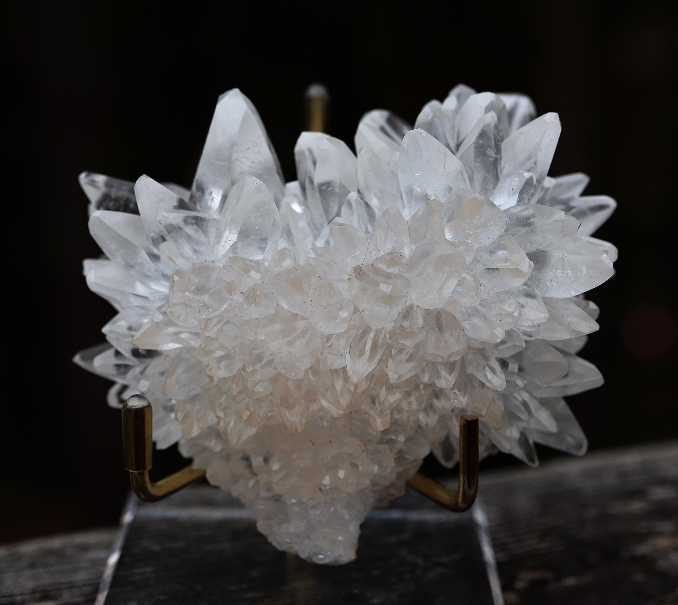 Offering a gem calcite flower. Shows all around and in pristine condition. This is from a recent find and we have the best one of the lot. Amazingly clear calcite points with a slightly yellowish color. One detach tiny area at the bottom otherwise this is a near floater. Nothing broken. Mined Obi Island, Indonesia. 3.75 inch across. Small cabinet. It fills your hand. Not a low end piece. USA sale only