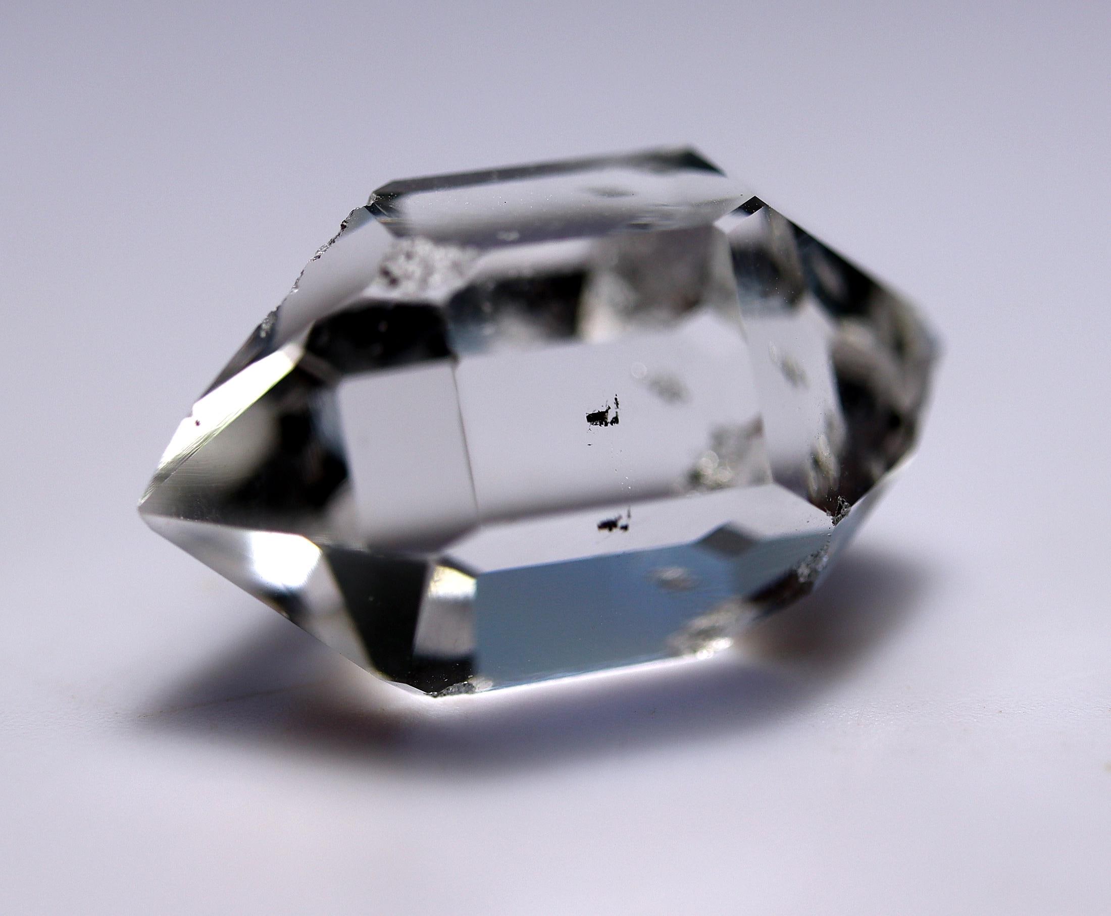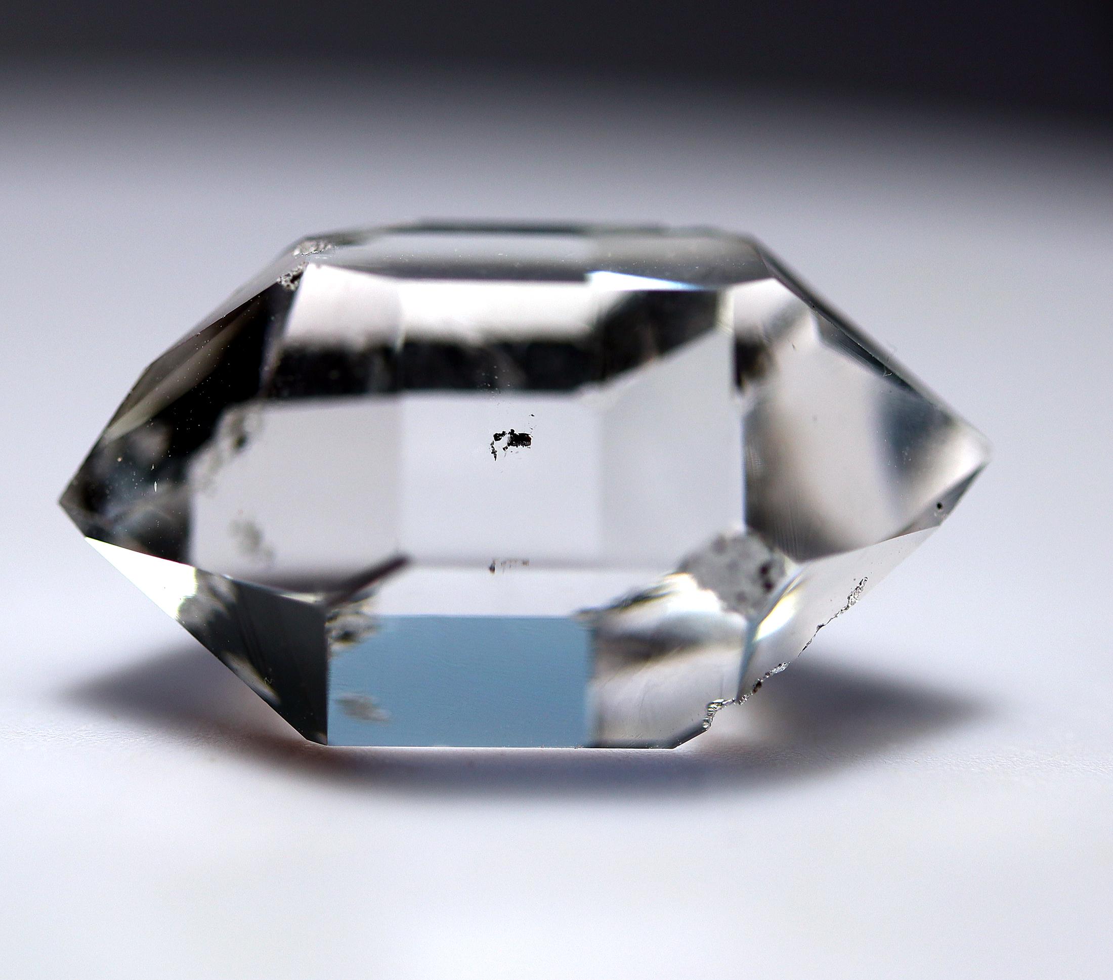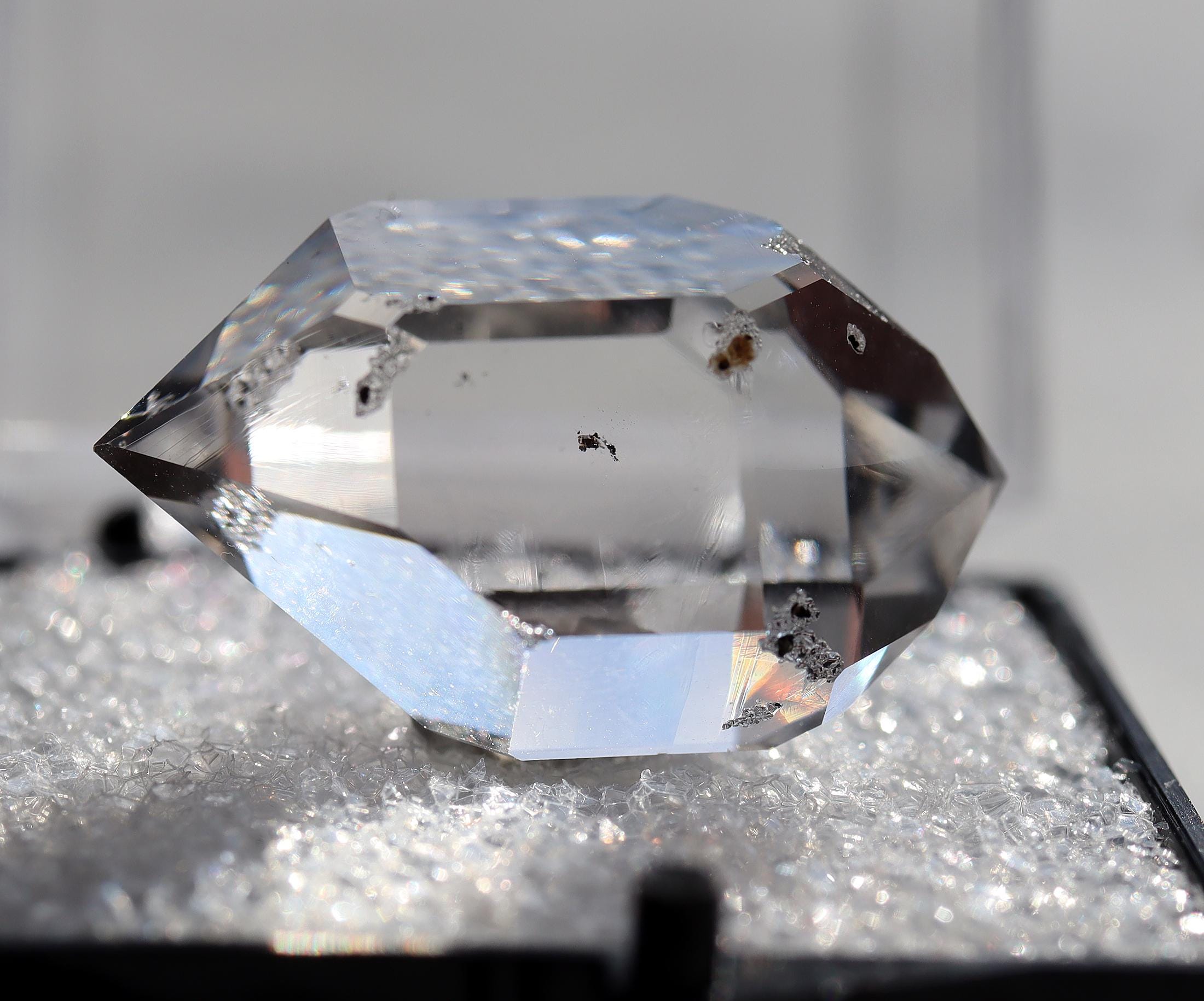 Herkimer Diamond Quartz, Middleville, Herkimer Co., New York. Exceptional clarity with perfect tips. No damage. Mounted in perky box. Ex Philip Phillips collection. 26 mm
