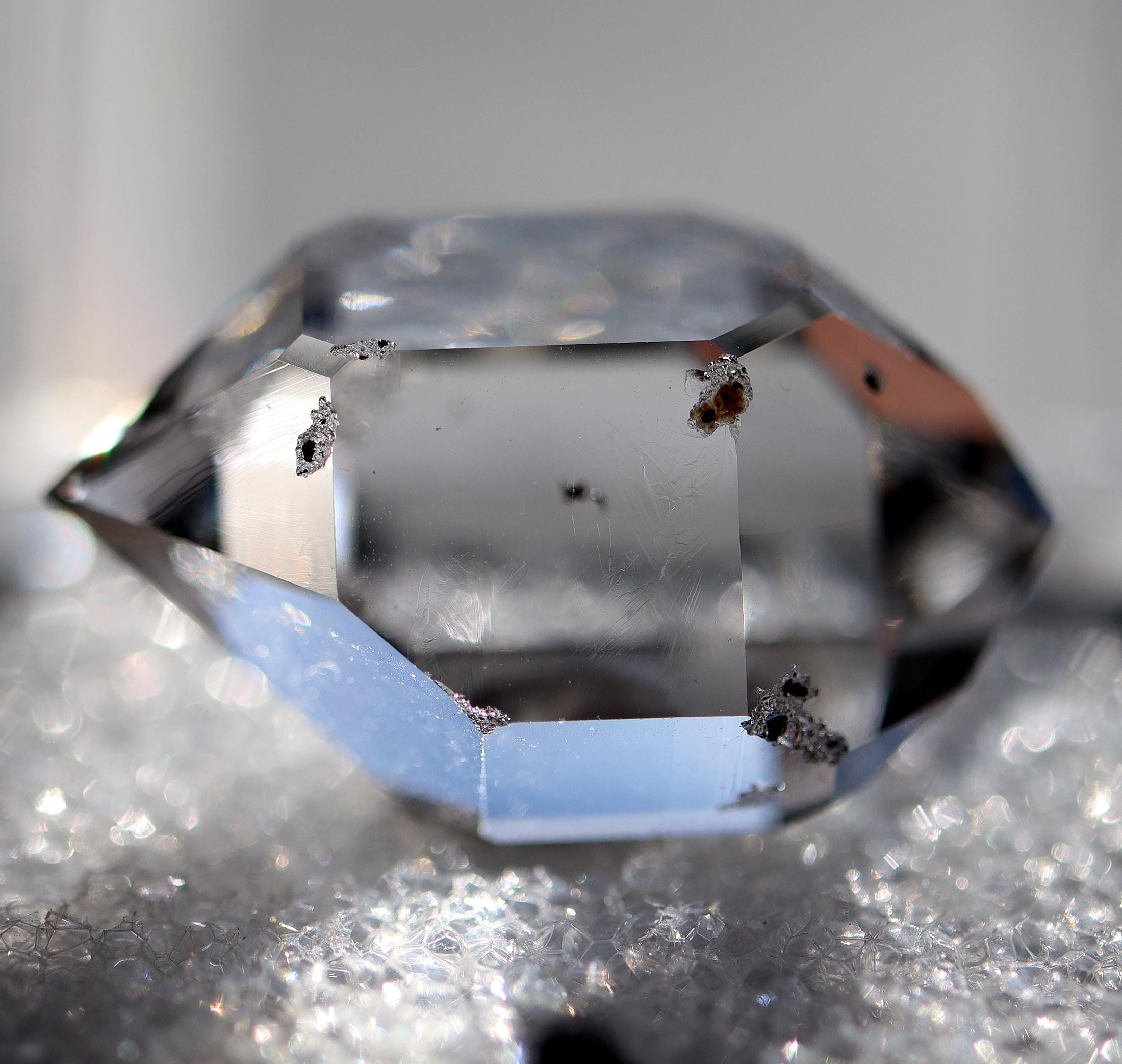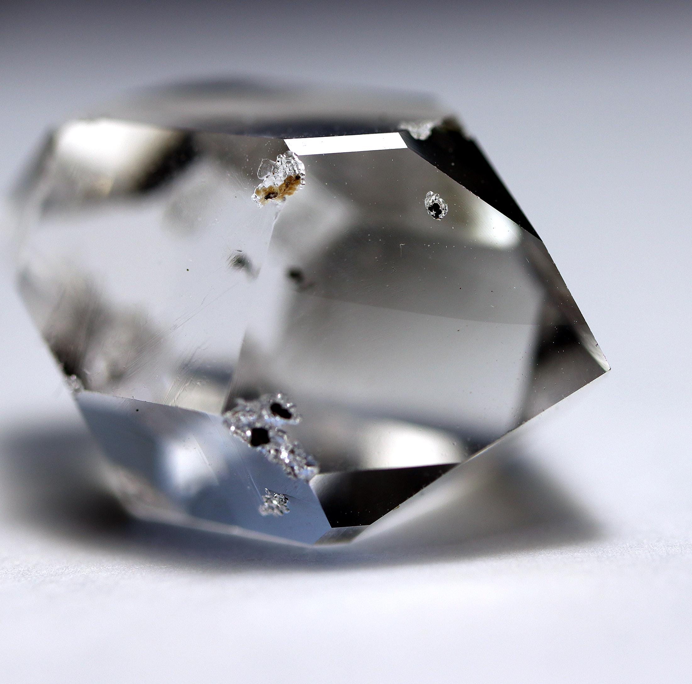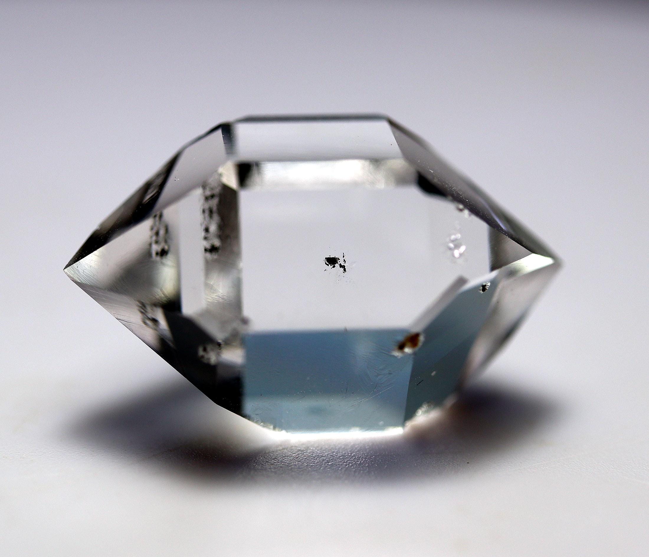 Herkimer Diamond Quartz, Middleville, Herkimer Co., New York. Exceptional clarity with perfect tips. No damage. Mounted in perky box. Ex Philip Phillips collection. 26 mm
