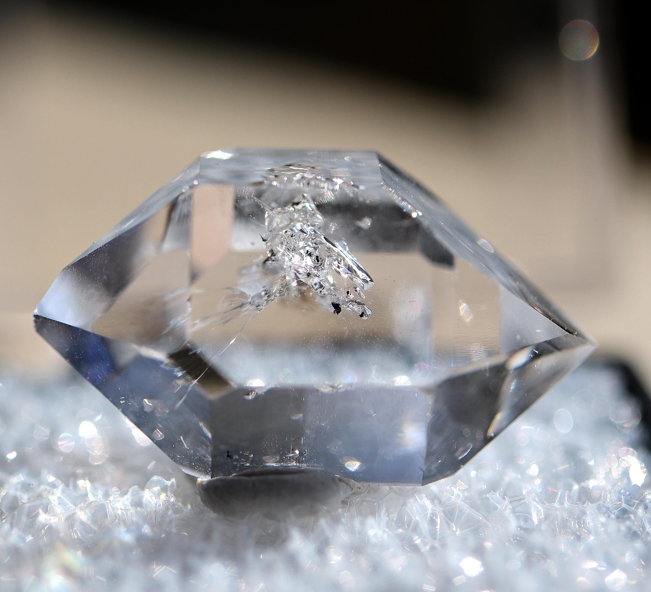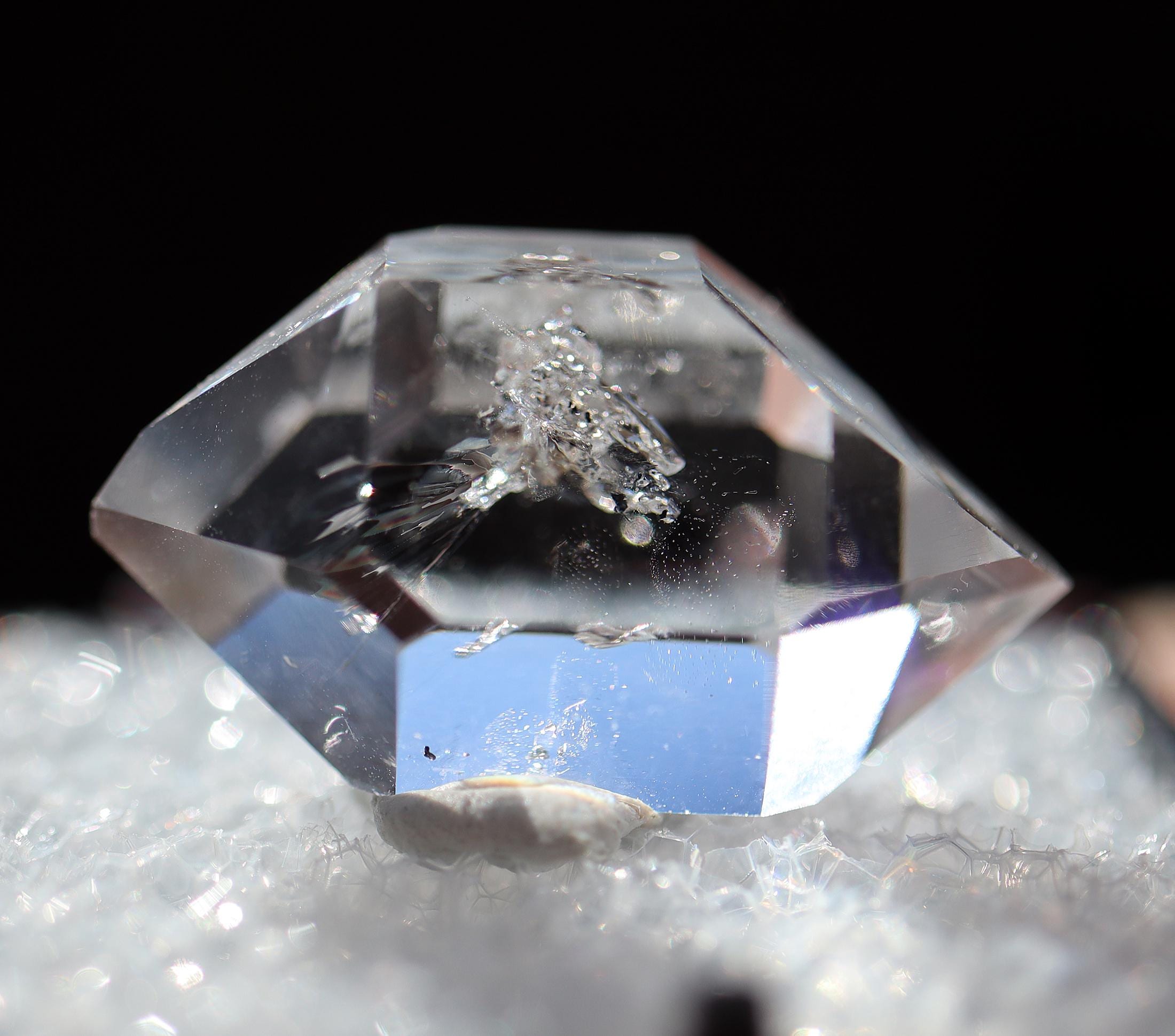Herkimer Diamond Quartz, Middleville, Herkimer Co., New York. Exceptional clarity with perfect tips. No damage. Mounted in perky box. Ex Philip Phillips collection. 25 mm