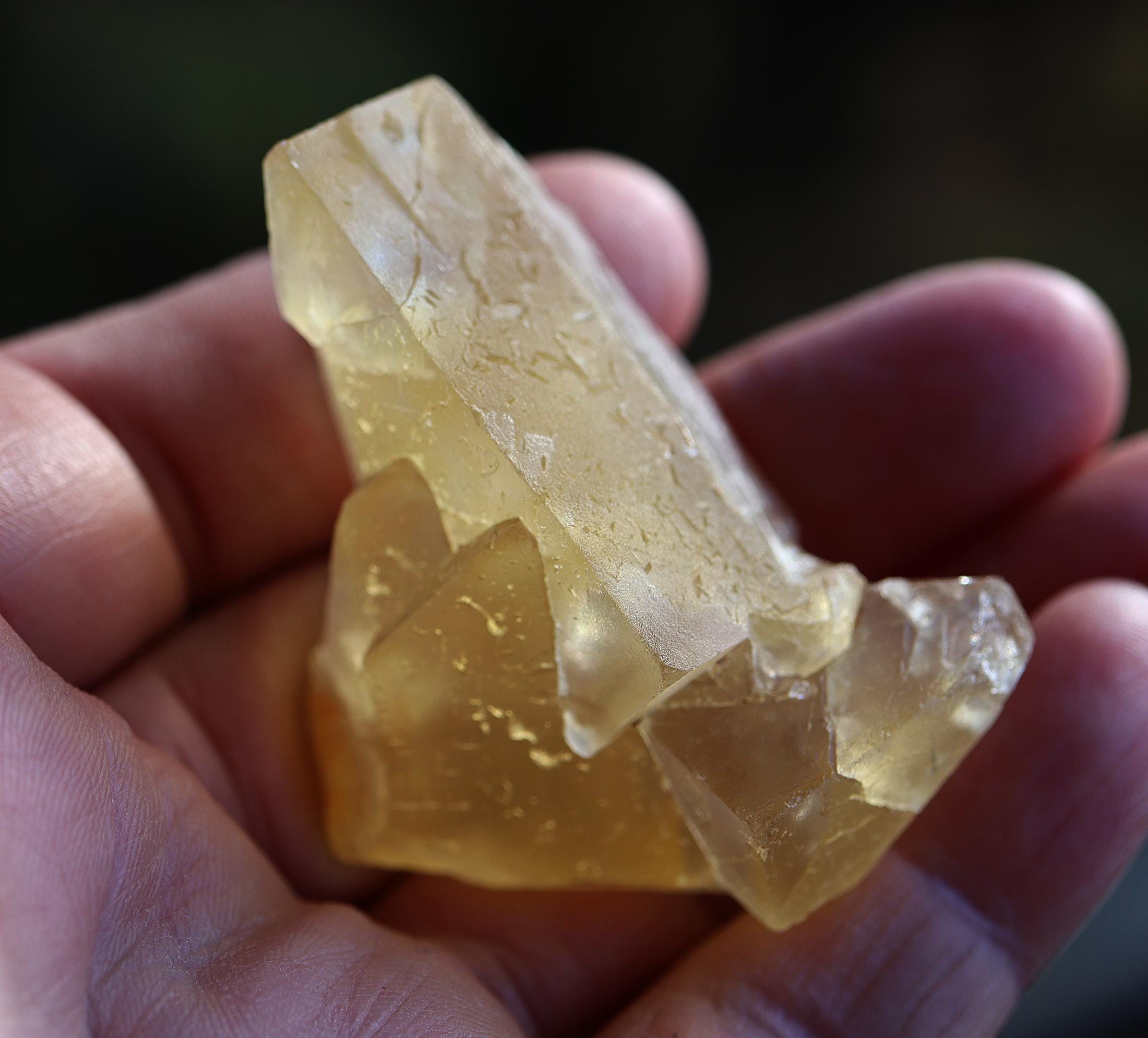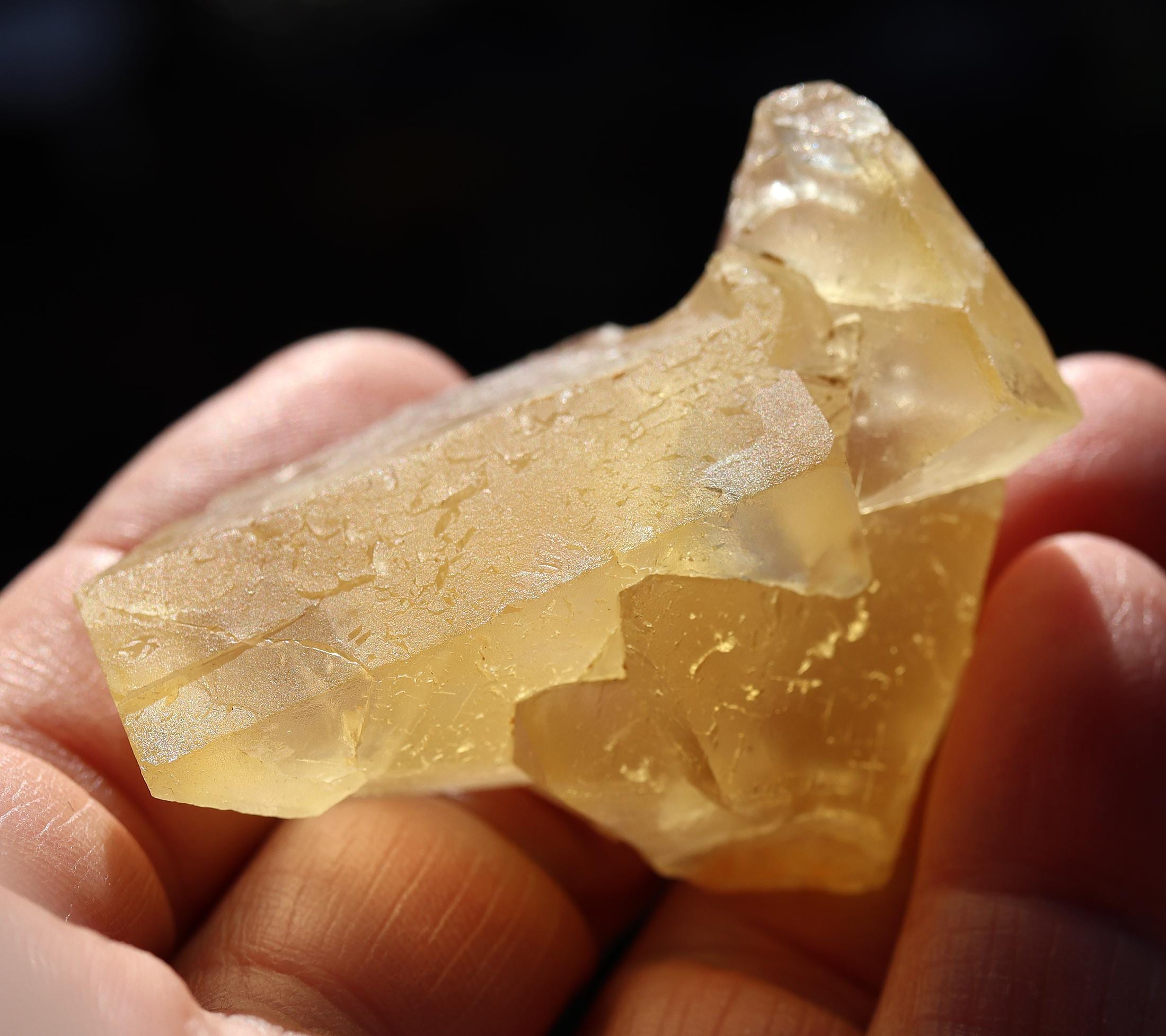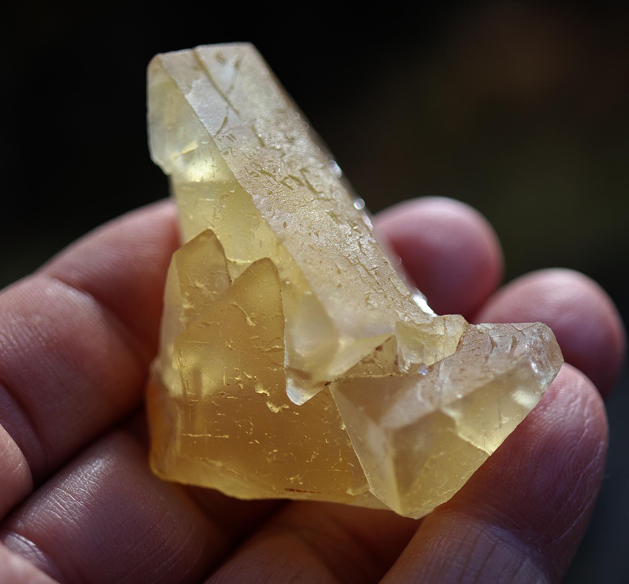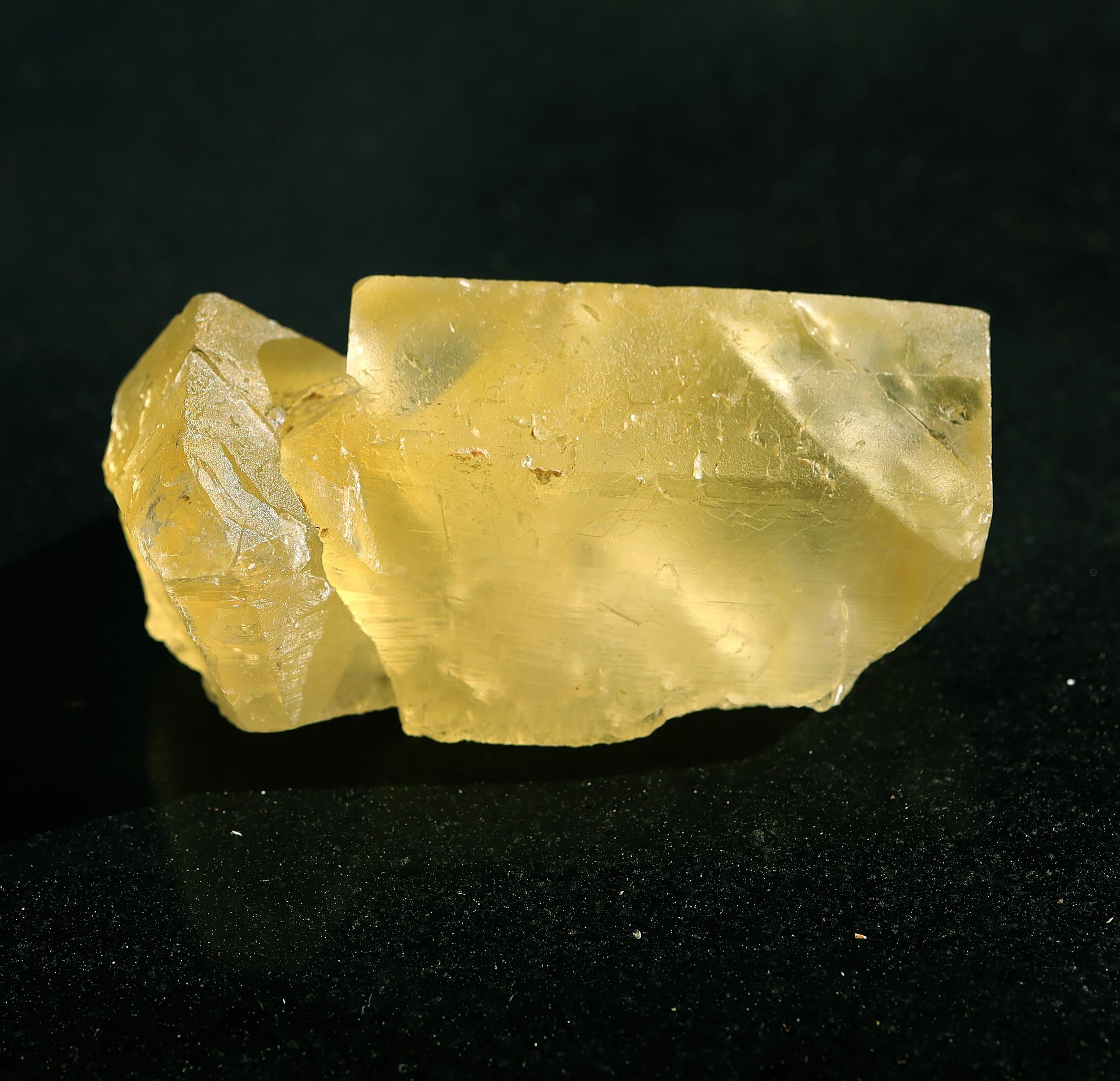 Lemon yellow fluorite crystal. Unknown location. 2.25 inch wide. All intact and in excellent condition. Bottom is sawn flat.