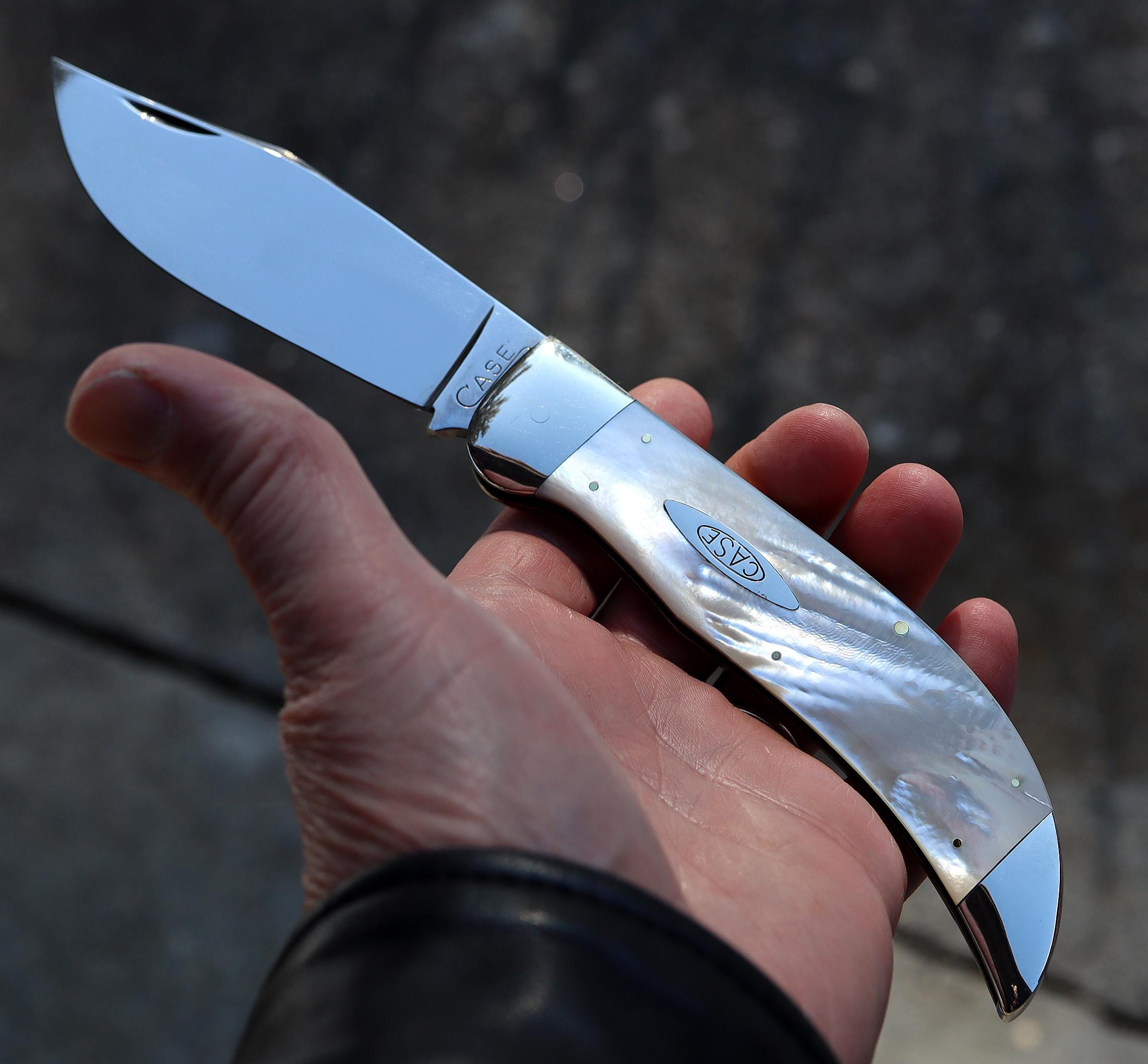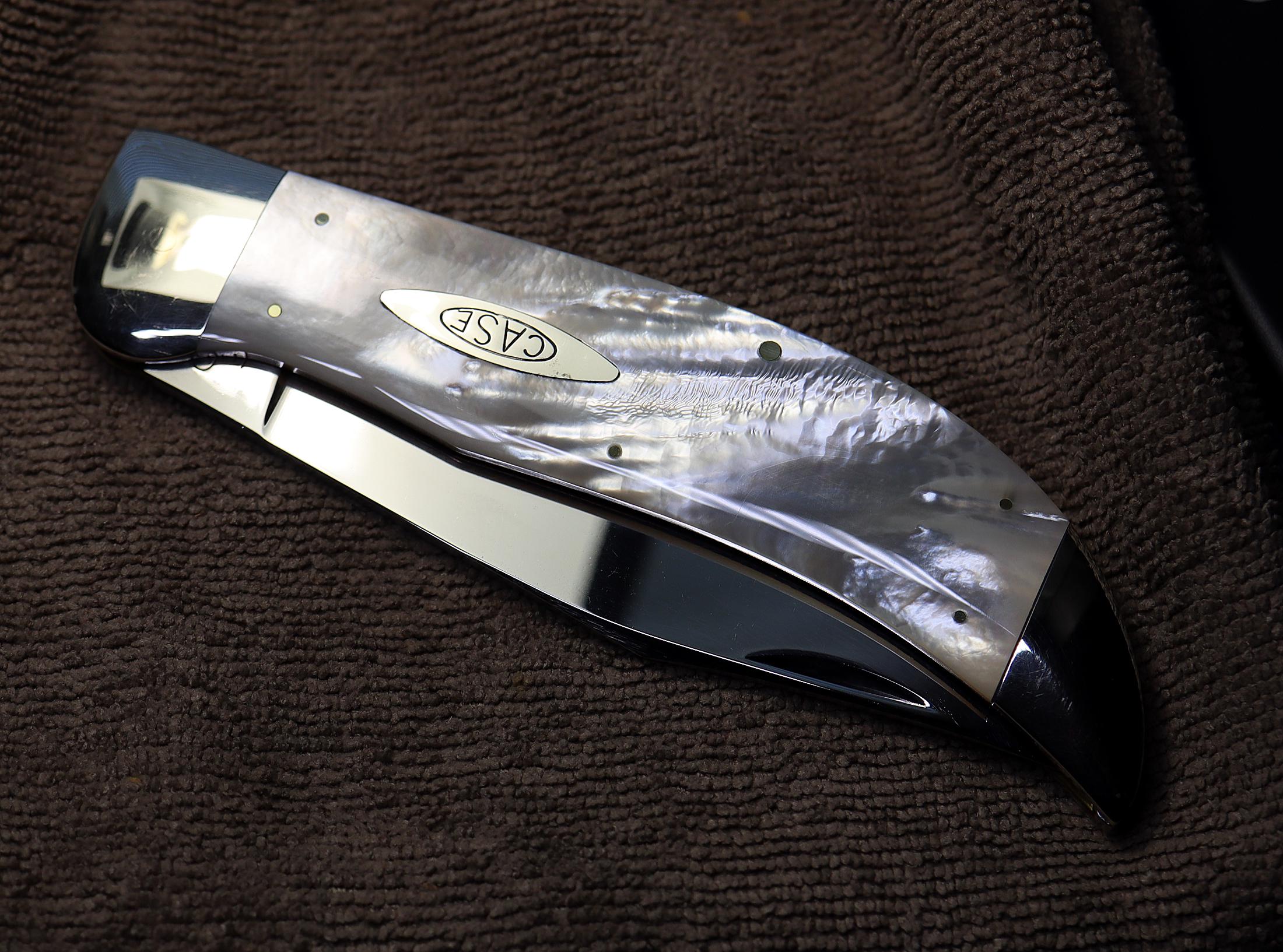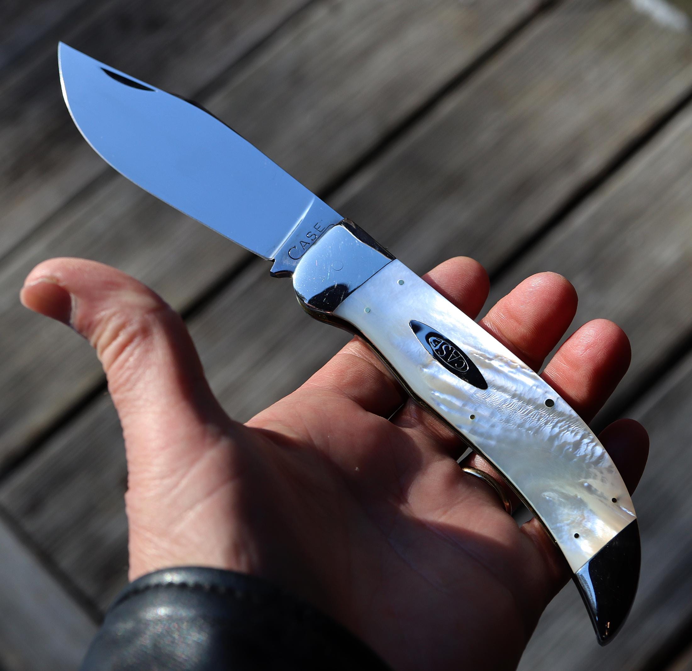 Case Classic pearl Clasp, Made 1990. 1 of 40 blade etch. The pearl is mint fiery with a cool natural ripple pattern. Excellent deep pearl both sides no cracks. See photos. Unused mint vintage knife. Blade is scratch free. Bolsters are bright and shiny. No issues. 5.25 inch closed. USA sale only.