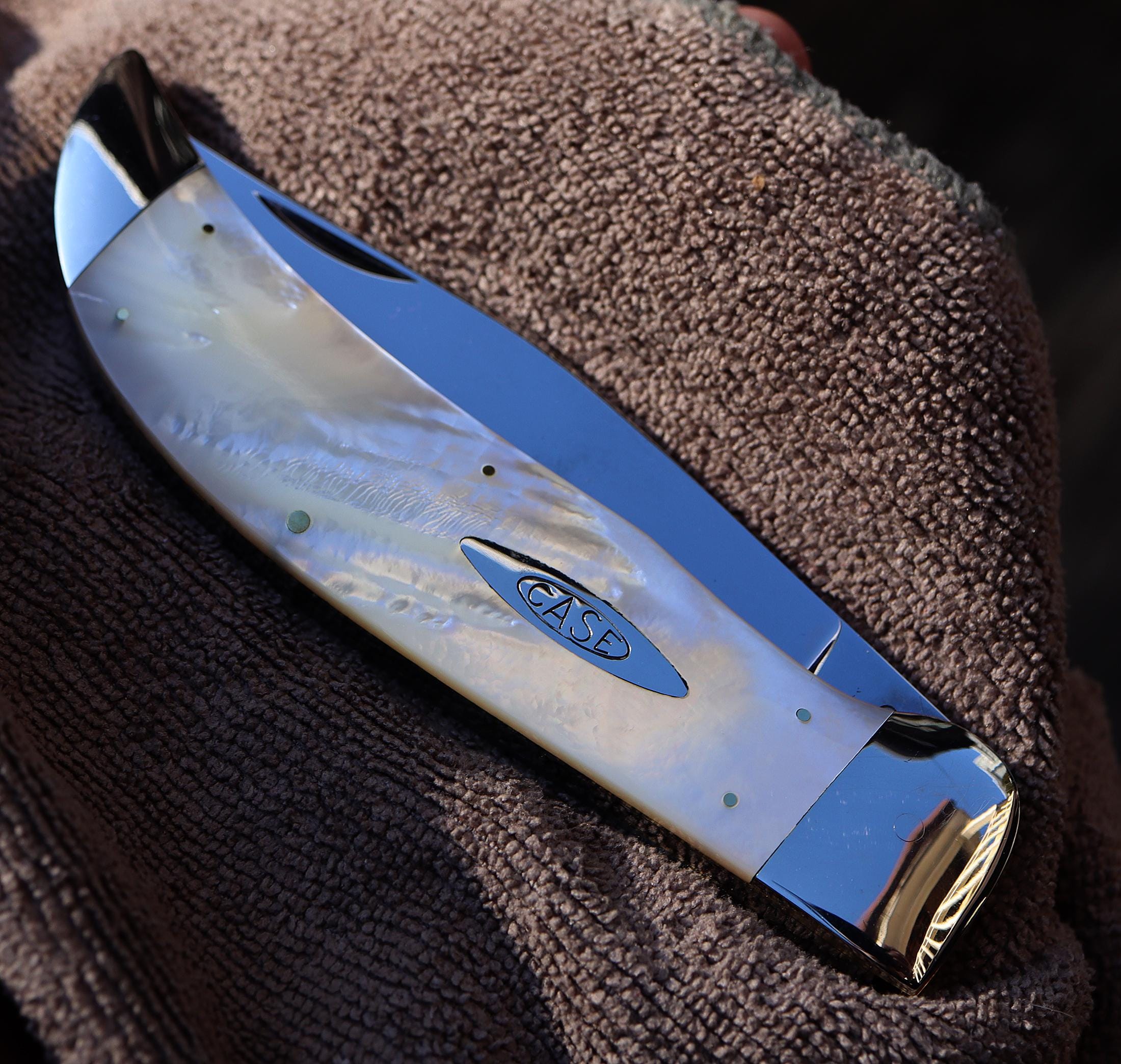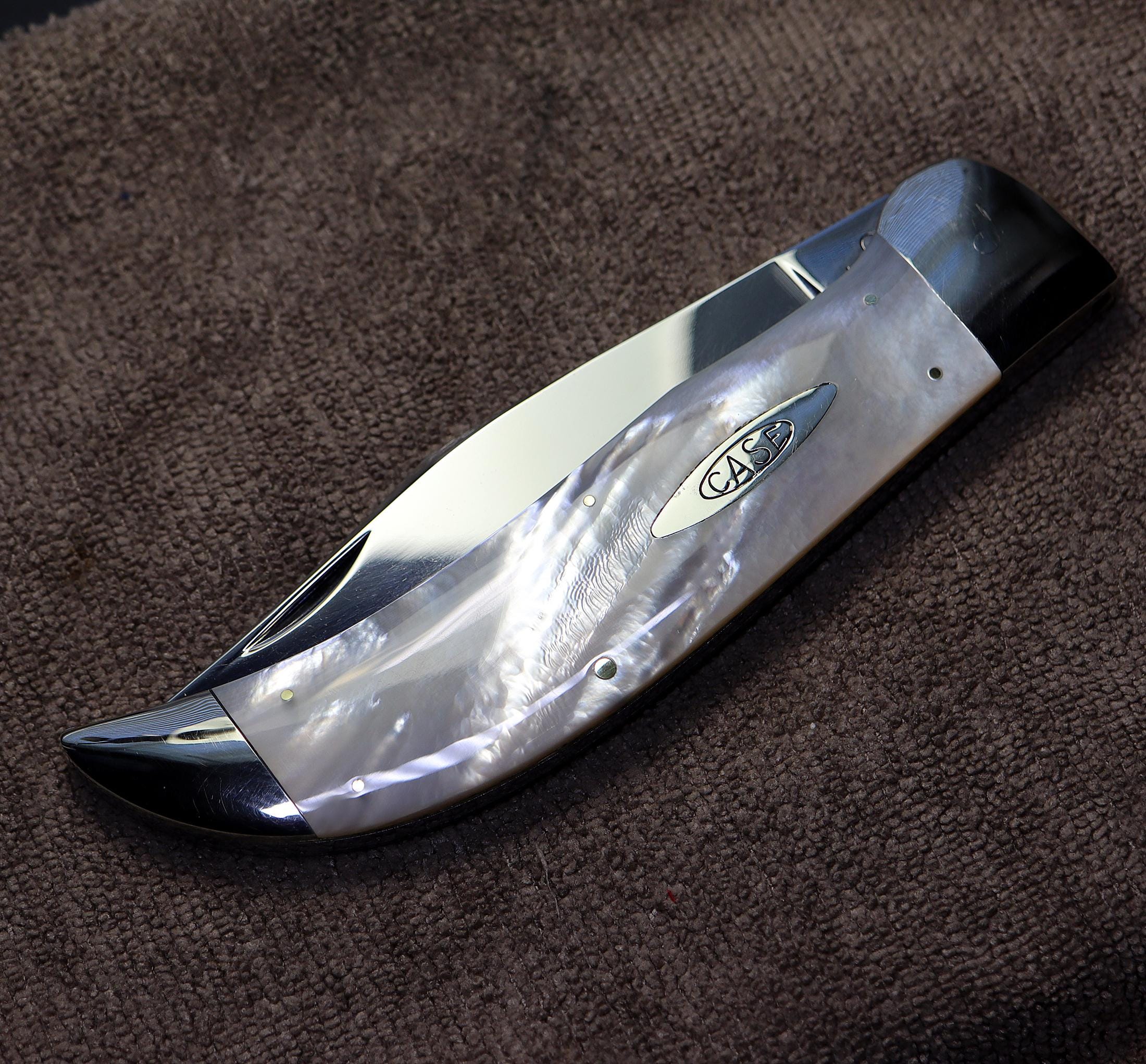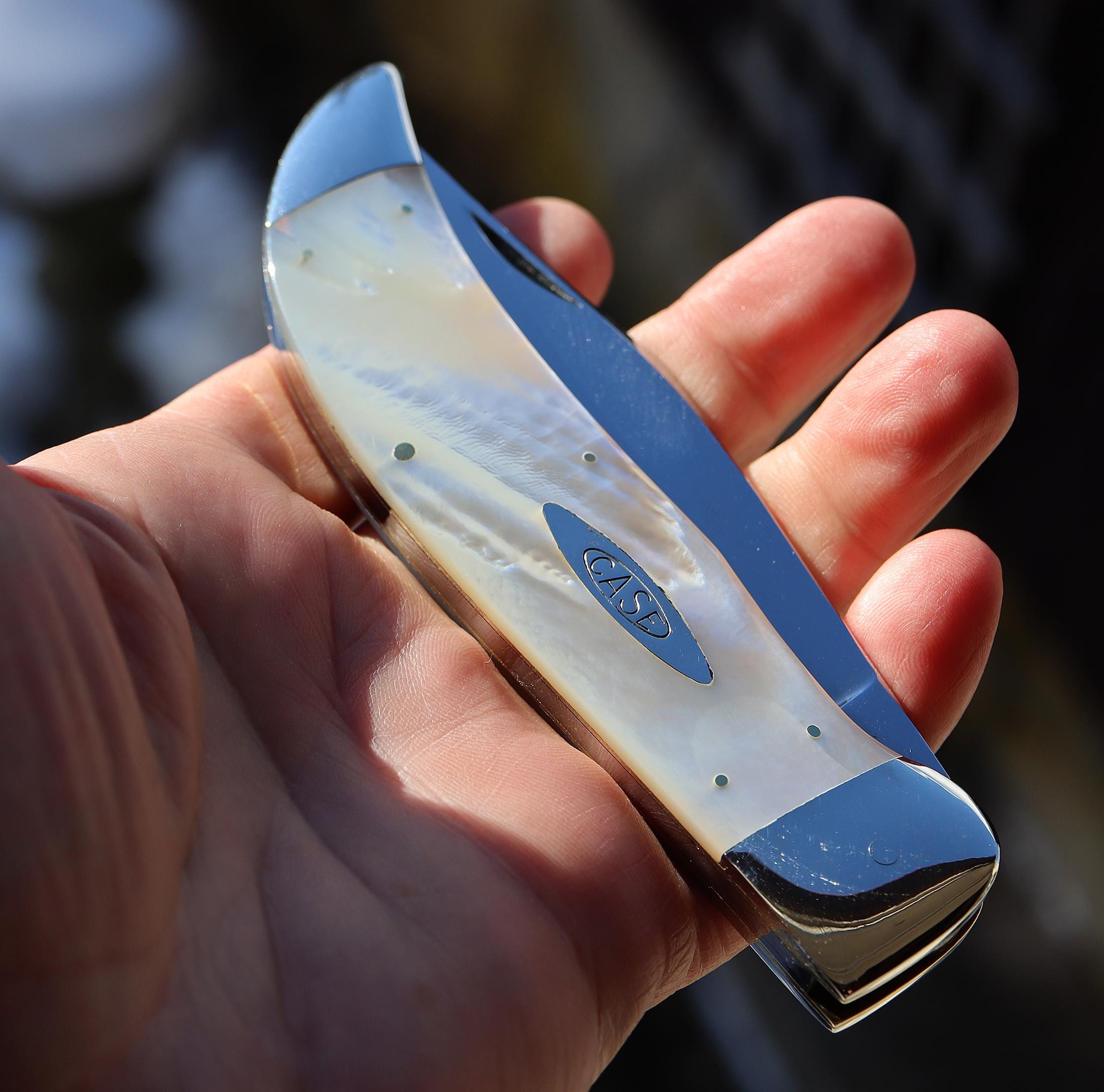 Case Classic pearl Clasp, Made 1990. 1 of 40 blade etch. The pearl is mint fiery with a cool natural ripple pattern. Excellent deep pearl both sides no cracks. See photos. Unused mint vintage knife. Blade is scratch free. Bolsters are bright and shiny. No issues. 5.25 inch closed. USA sale only.