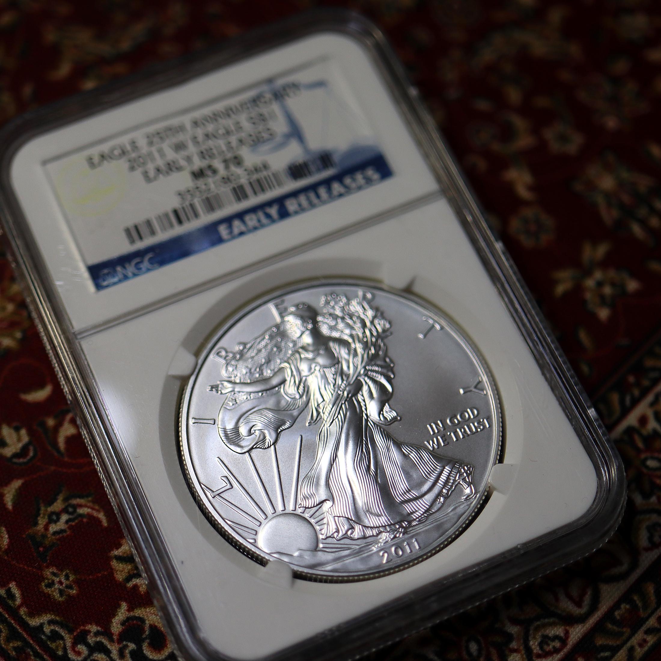The 2011 W American Silver Eagle $1 Coin is a highly sought-after coin for collectors due to its stunning design and pristine condition, certified by NGC as MS 70 W EARLY RELEASES, 25th Anniversary. With the certification from NGC, collectors can be assured of the coin's authenticity and quality, making it a prized possession for any numismatist. Note any scratching seen is on the outside case from lighting, the coin is perfect.