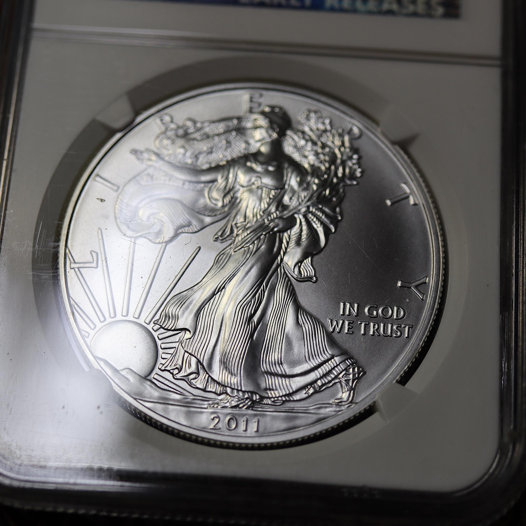 The 2011 S American Silver Eagle $1 Coin is a highly sought-after coin for collectors due to its stunning design and pristine condition, certified by NGC as MS 70 W EARLY RELEASES. With the certification from NGC, collectors can be assured of the coin's authenticity and quality, making it a prized possession for any numismatist. Note any scratching seen is on the outside case from lighting, the coin is perfect. This is one released with no "S" mint mark.