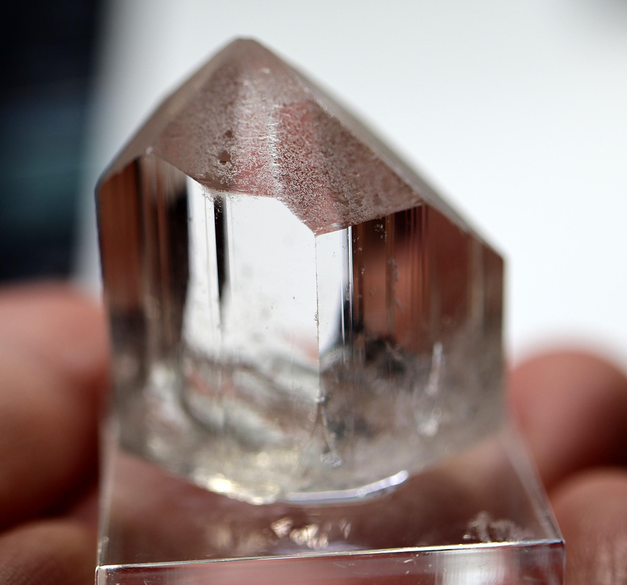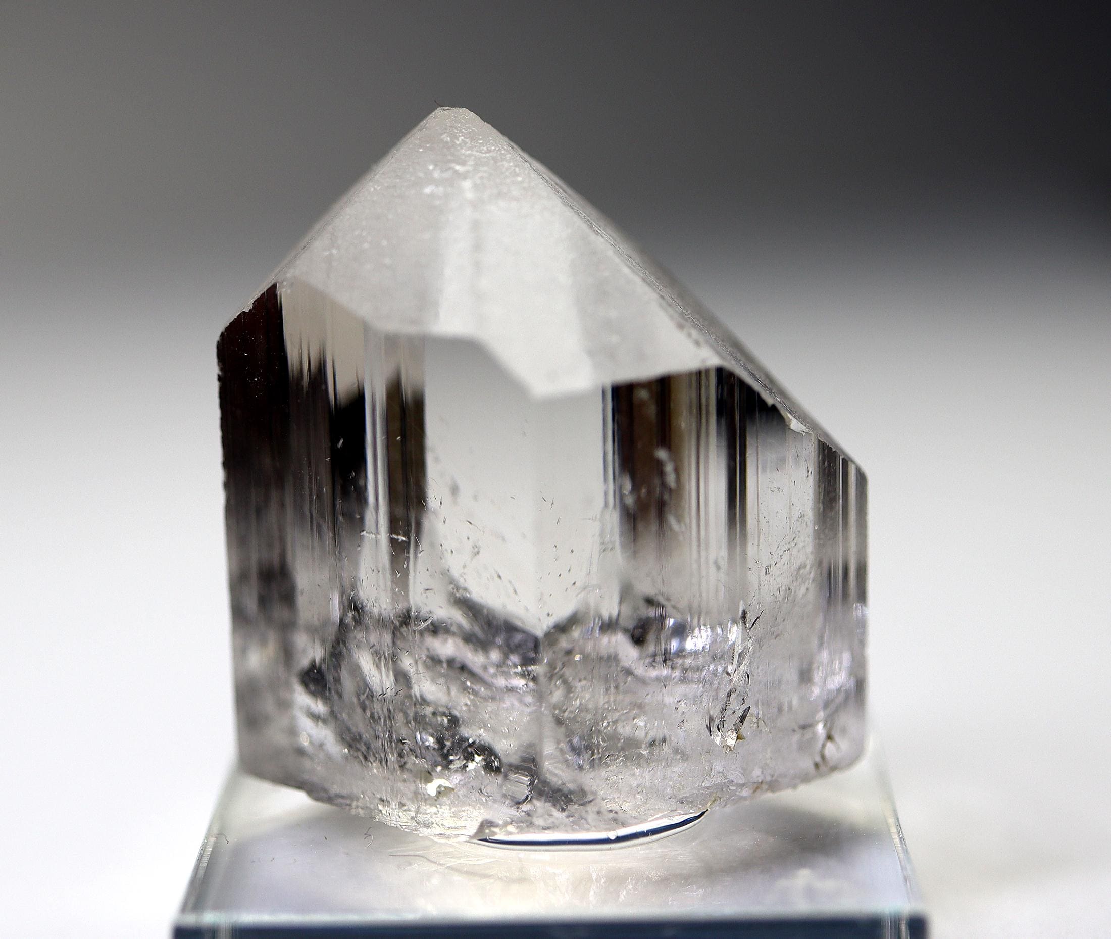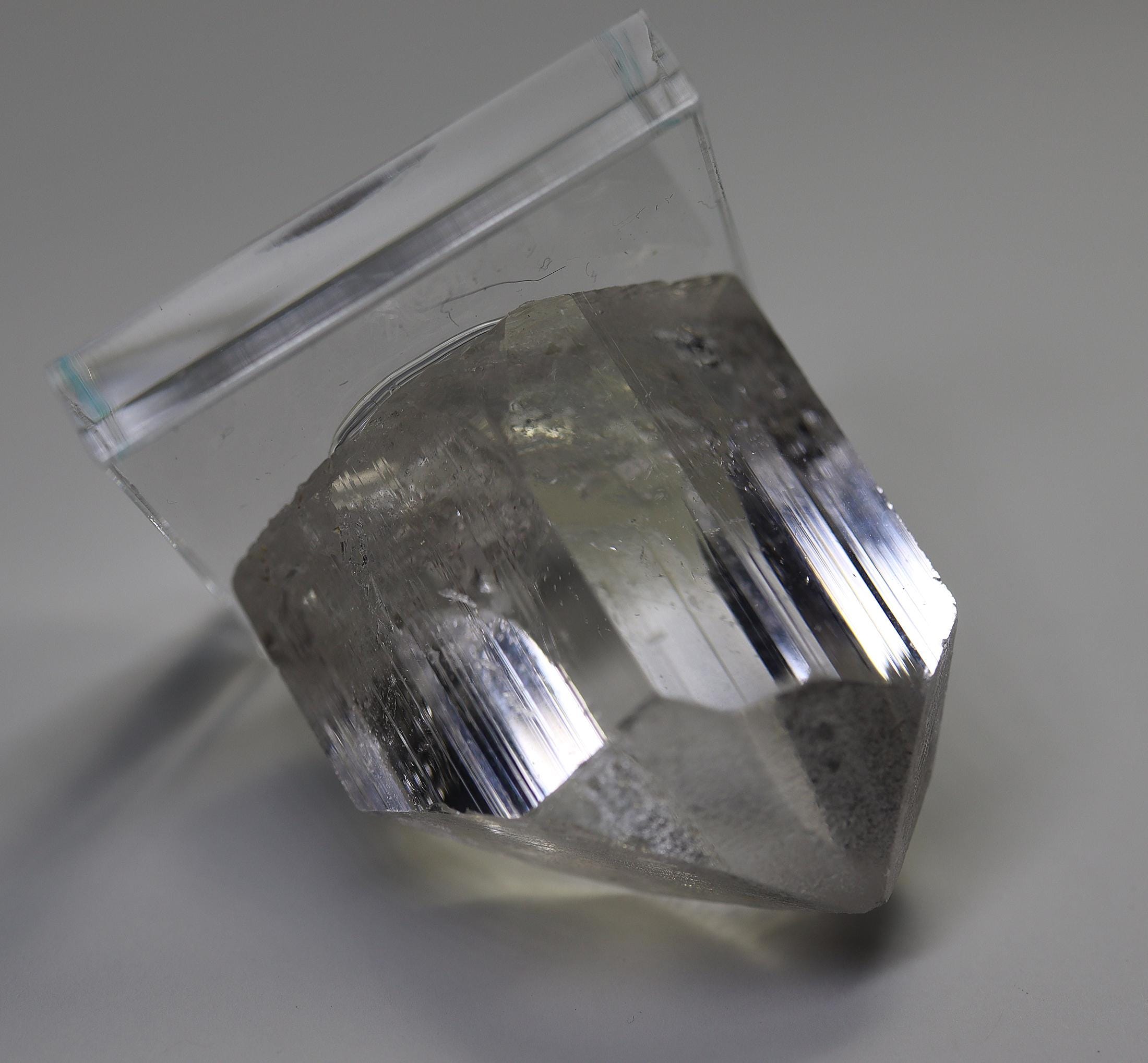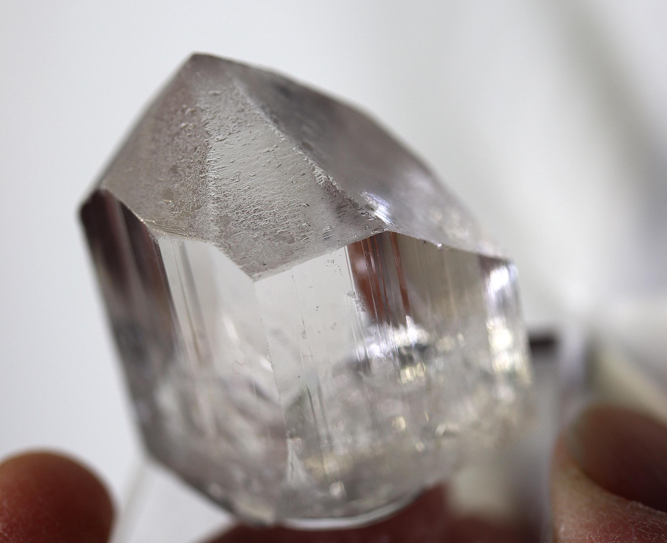 Offering a Gem colorless Topaz crystal. Clear as ice. Sharp well formed termination with a touch of etching. Highly lustrous sides. No damage but for a detach point at bottom back. Mined Pan-taw (Pandaw), Kyatpyin North, Mogok Township, Pyin-Oo-Lwin District, Mandalay Region, Myanmar. Comes mounted on a Lucite base. 40.04 total grams including the base. 31 mm wide by 31 mm tall by 21 mm deep. Facet grade crystal. Overseas ships Etsy shipping ONLY