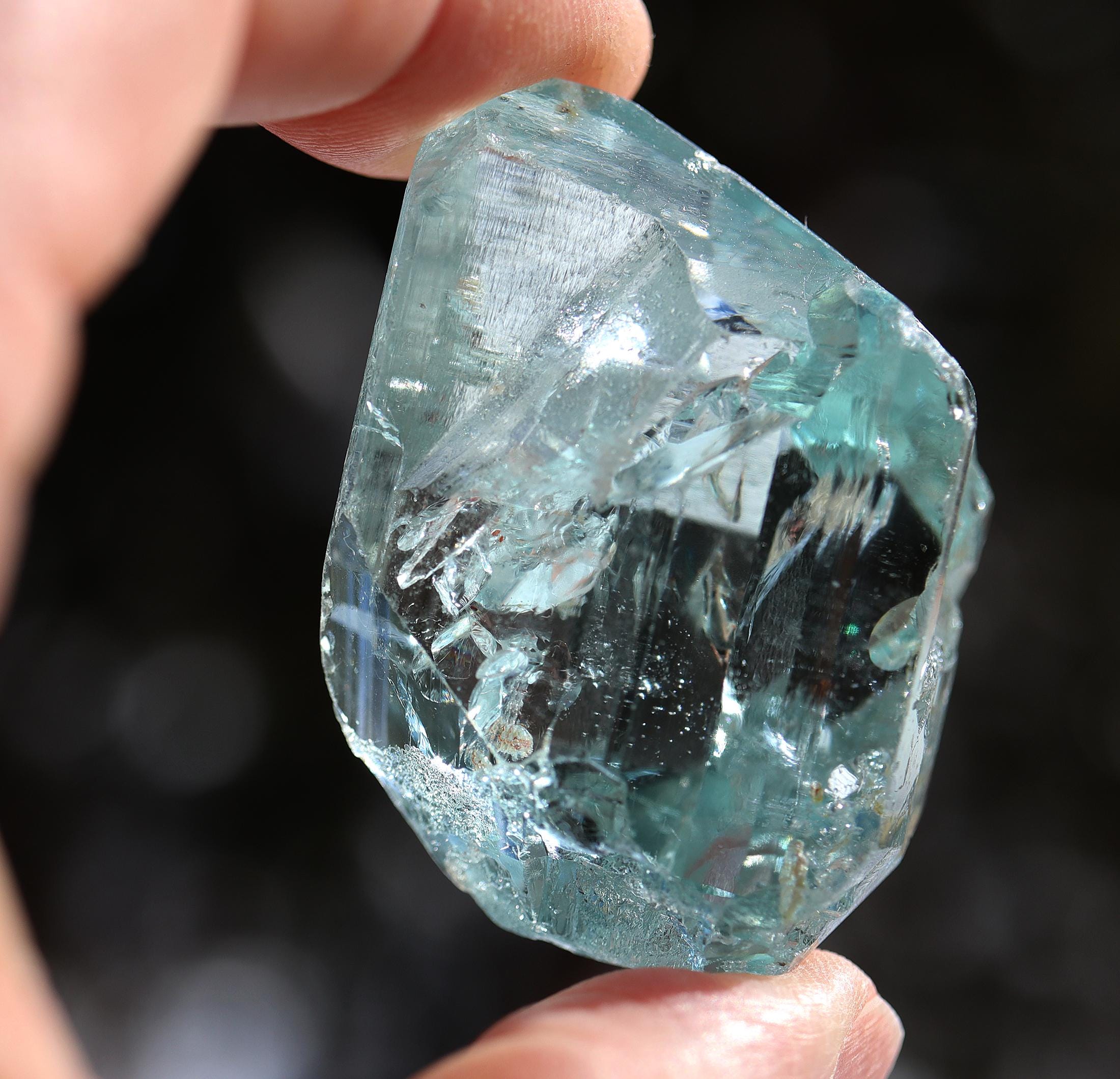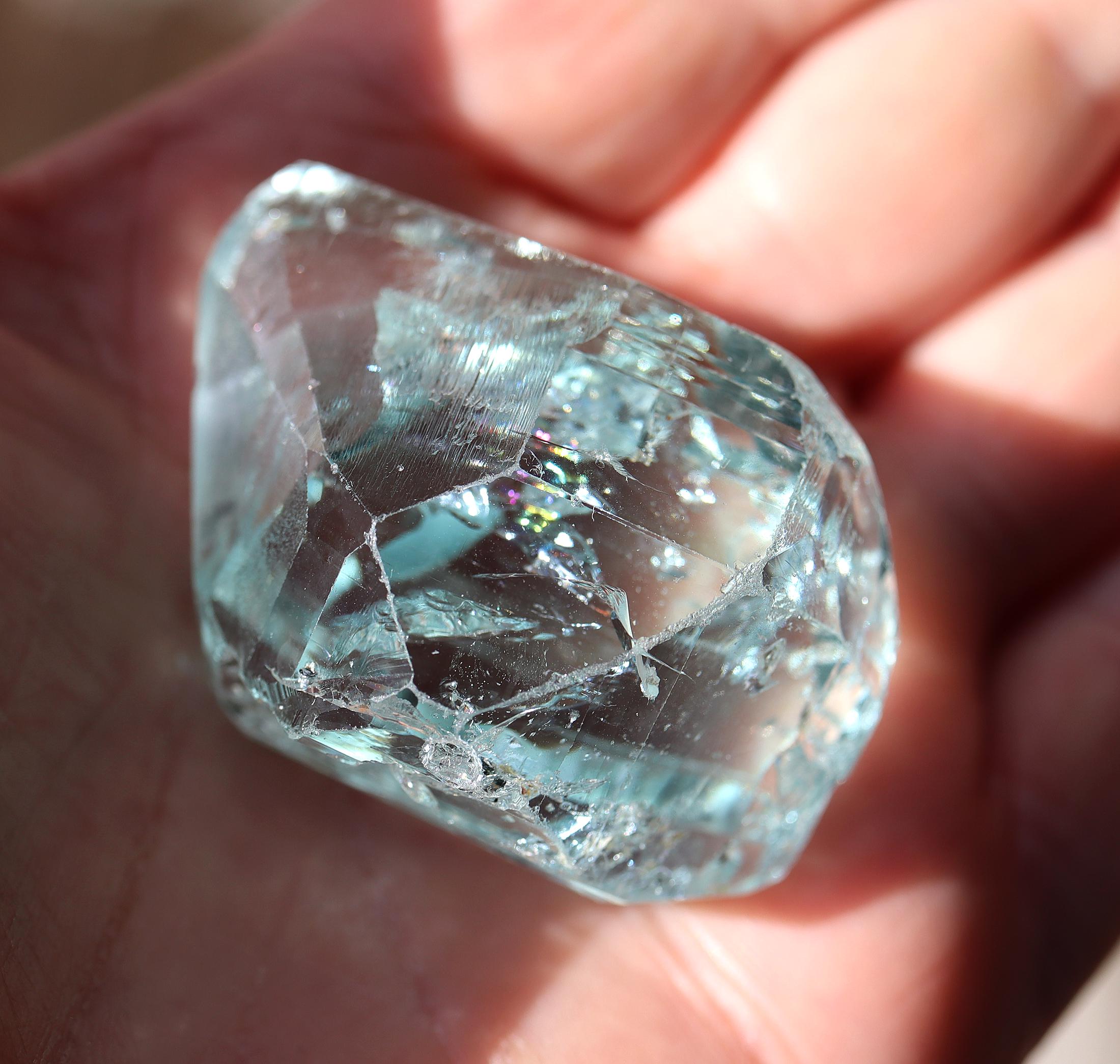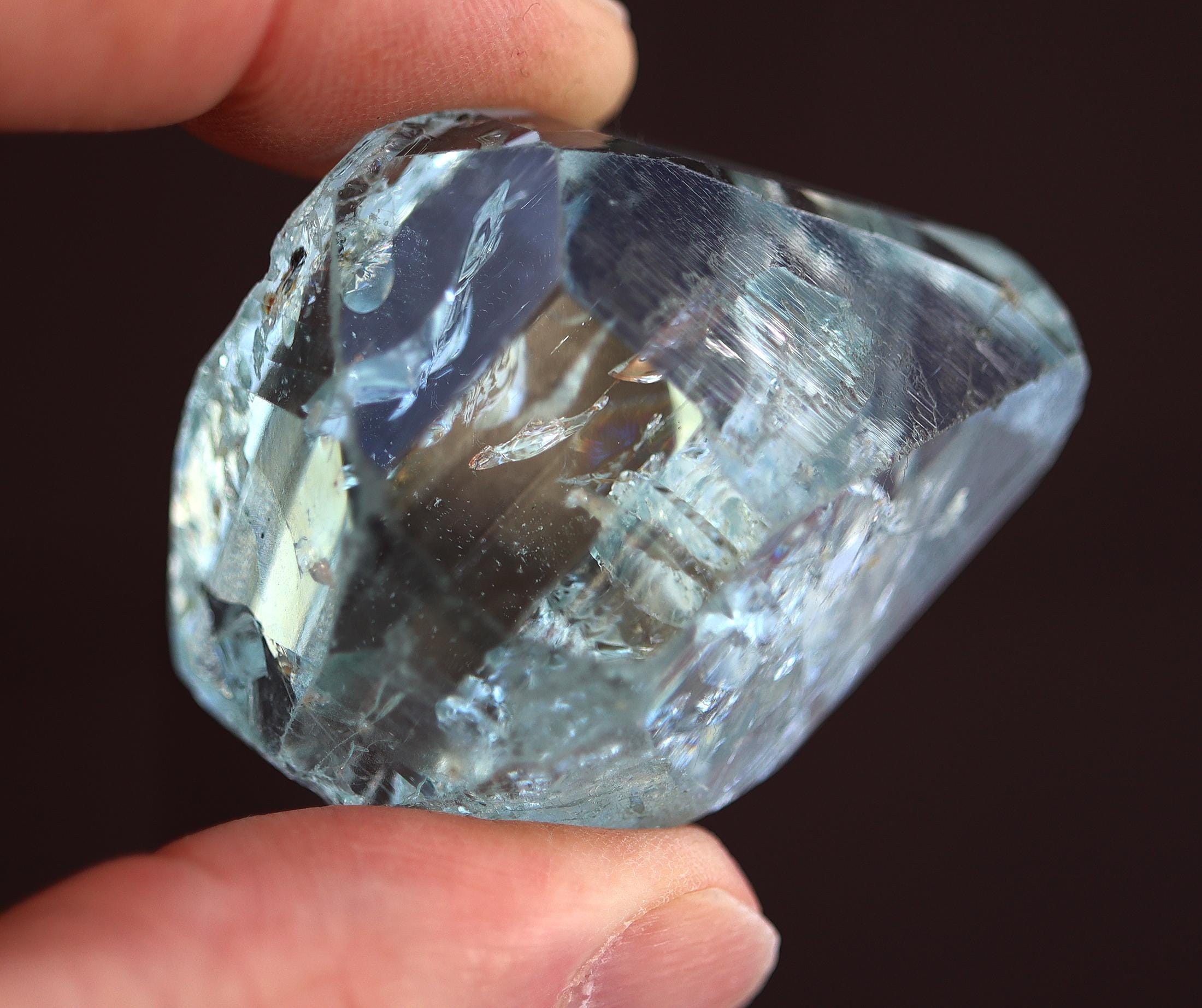 Offering a gem blue Topaz floater. Crystallized all around with excellent clarity. Our friends are long time miners in Minas Gerais, Brazil. They mine all types including this 1980's find of blue Topaz. Mined at the Canta Galo mine, Nova Era, Minas Gerais, Brazil. This crystal is one of the top of the find as seen by its clarity and luster. Weight 94.15 grams, (470.75 carats).