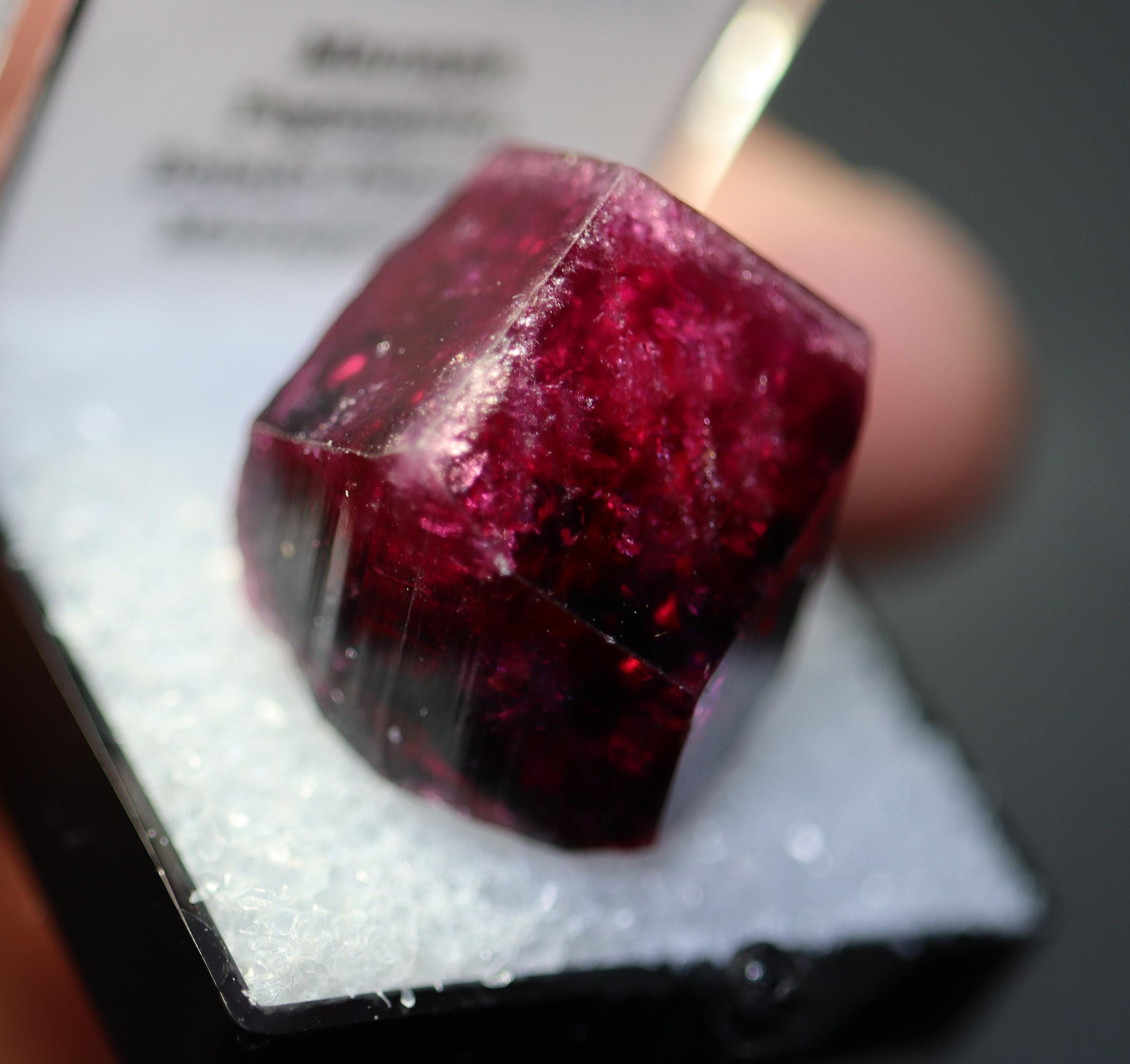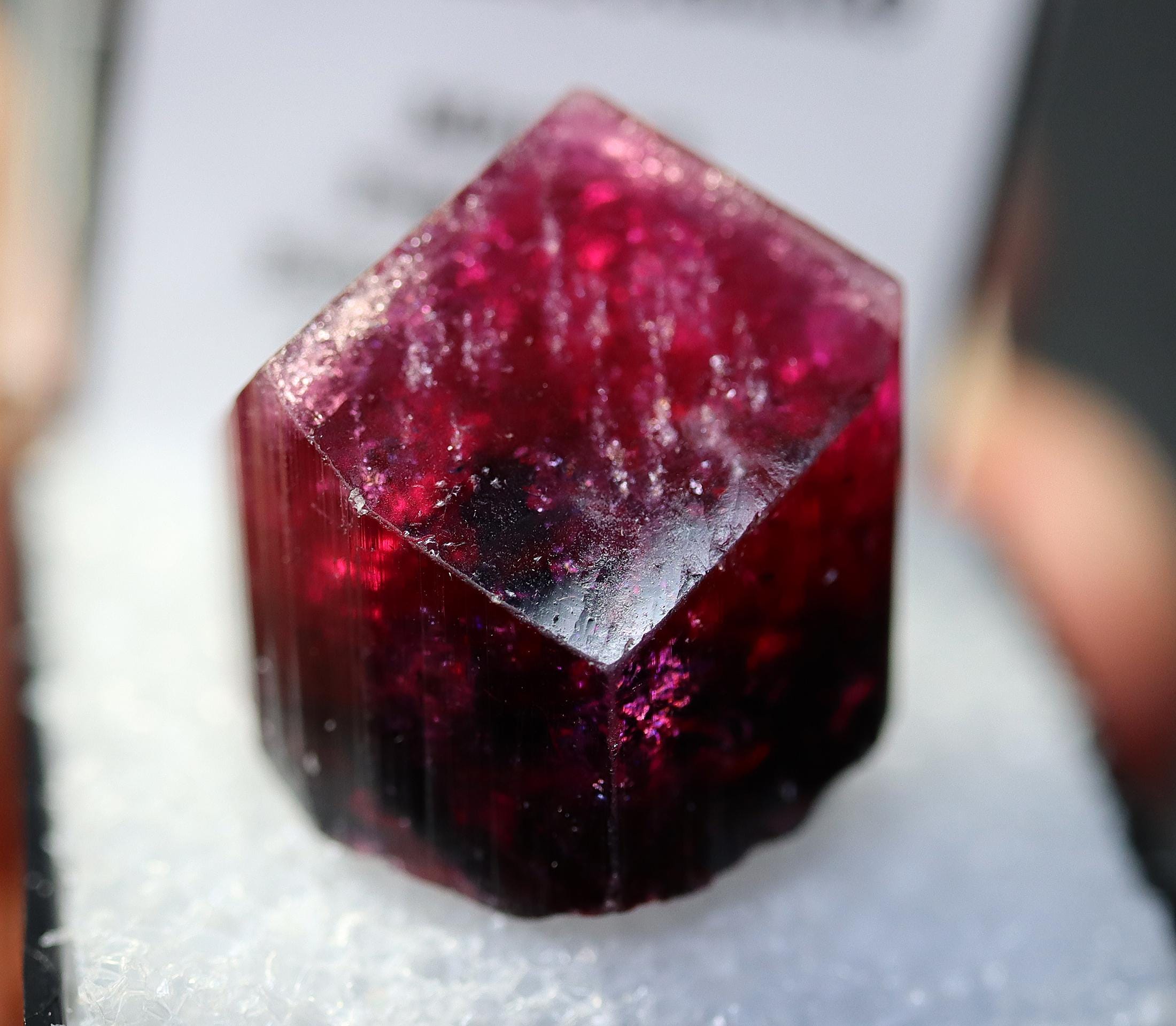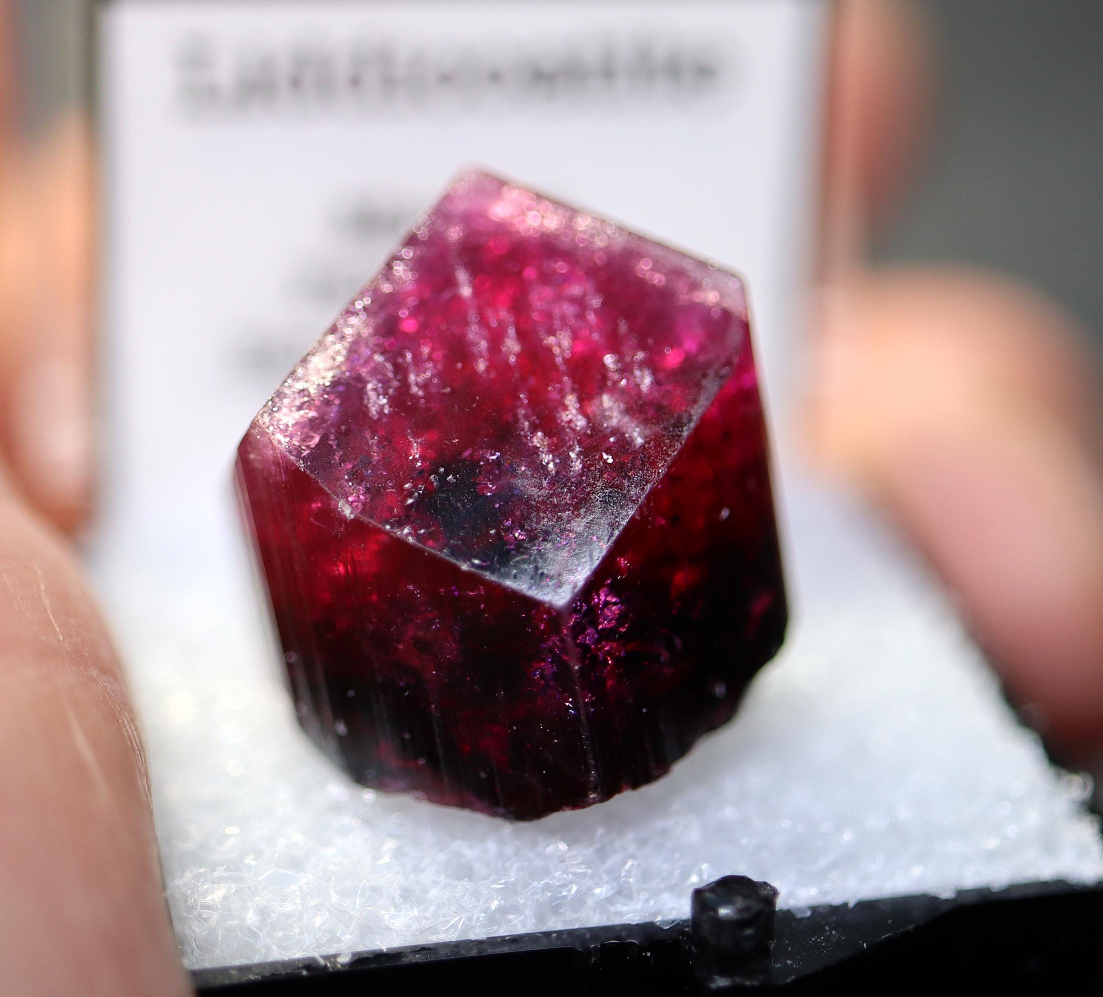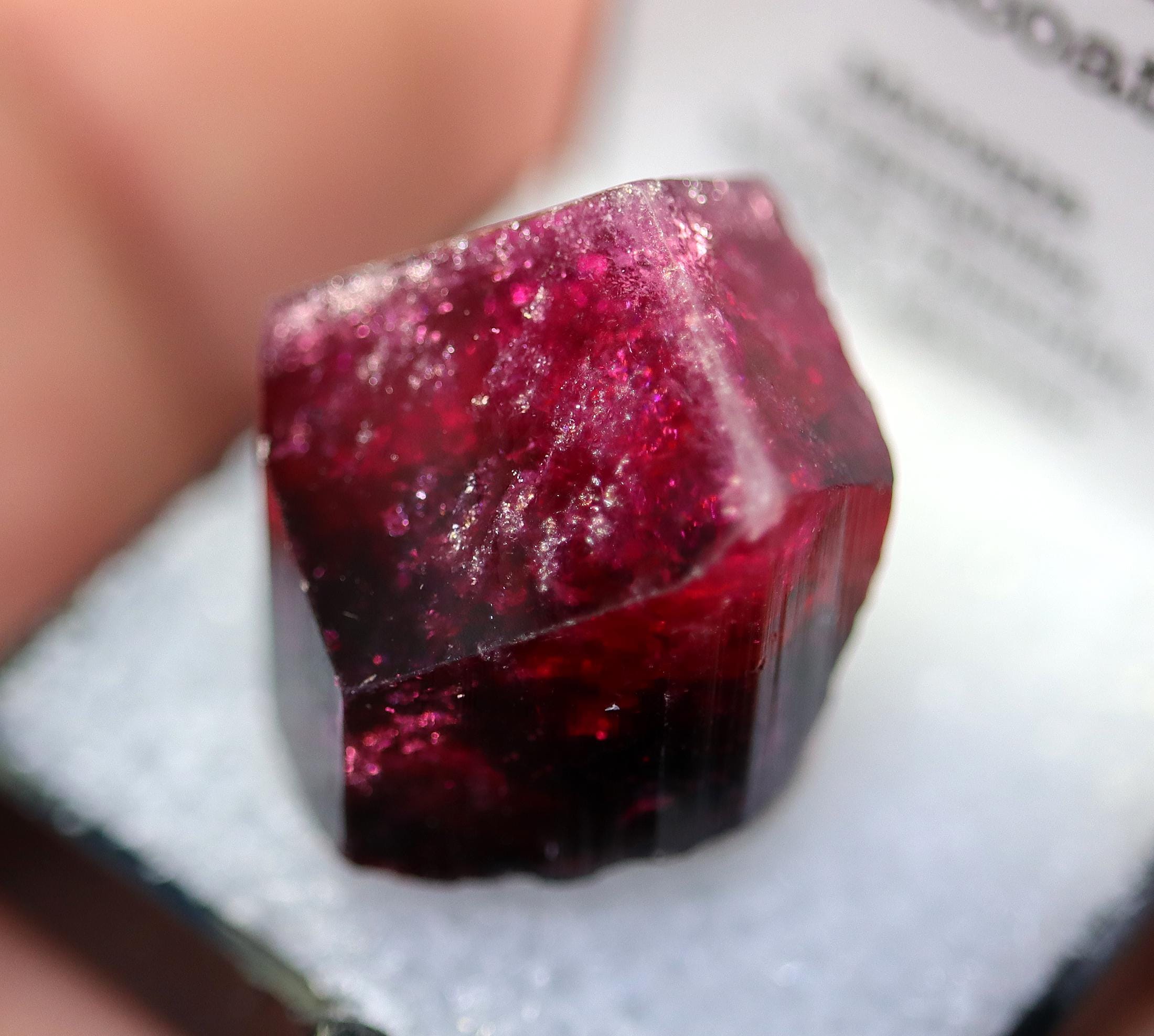 Gem Tourmaline var. Liddicoatite. Manapa Pegmatite, Betafo District, Madagascar. 10.06 grams. Shocking red color (not pink). Excellent condition. 20 mm across by 21 mm tall by 21 mm deep.
