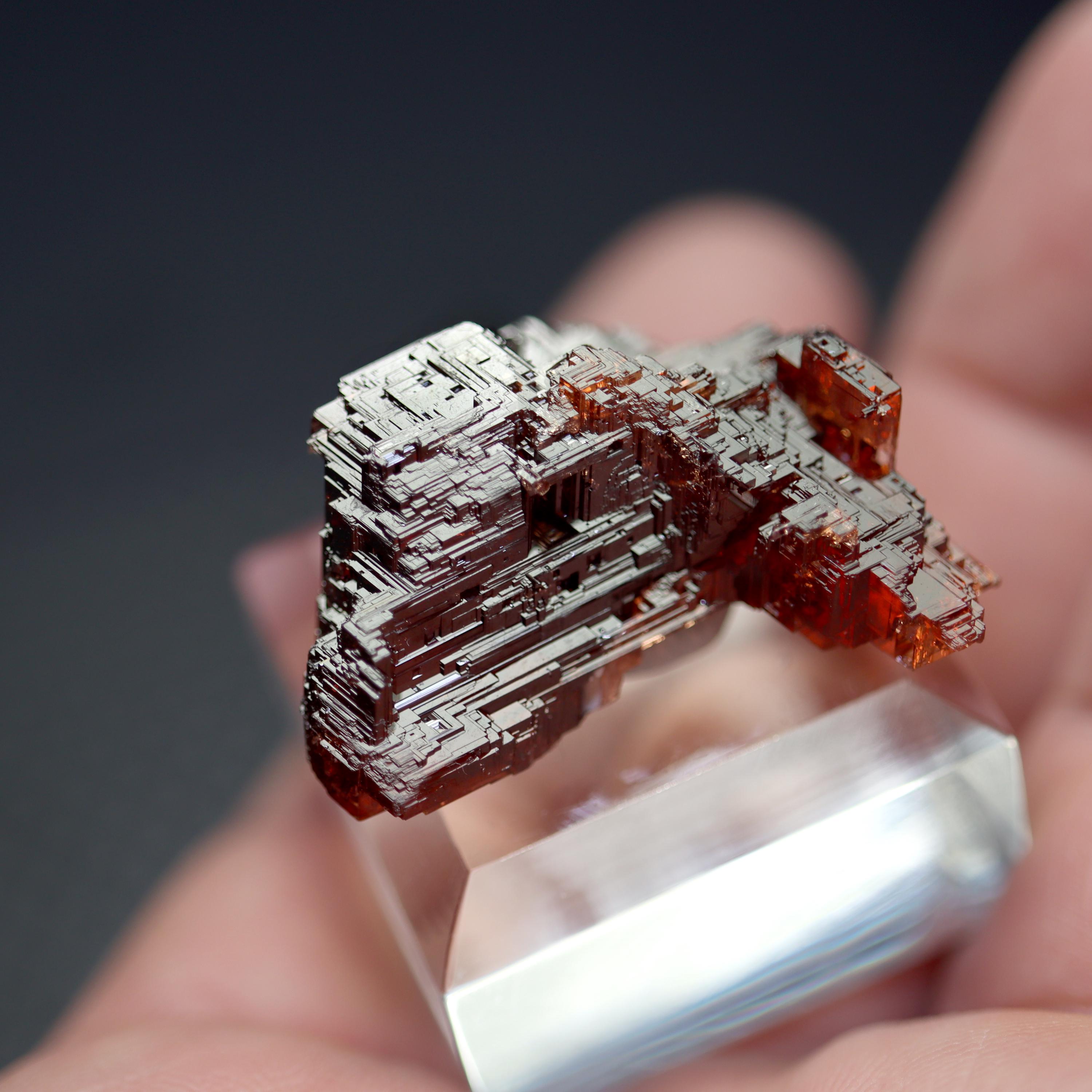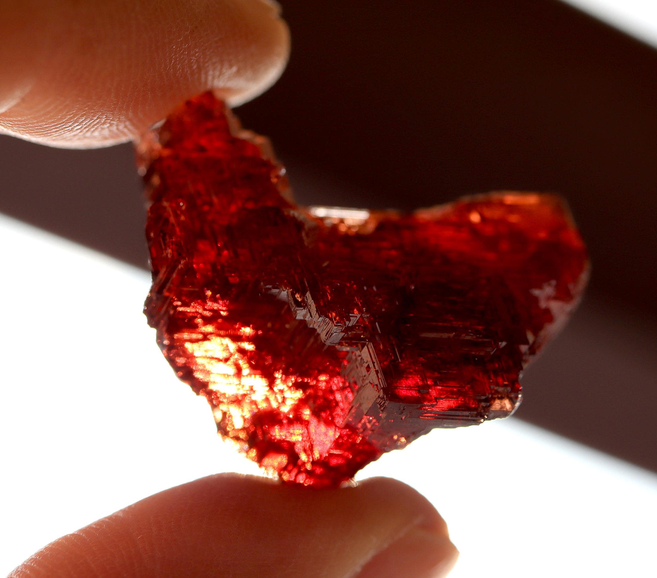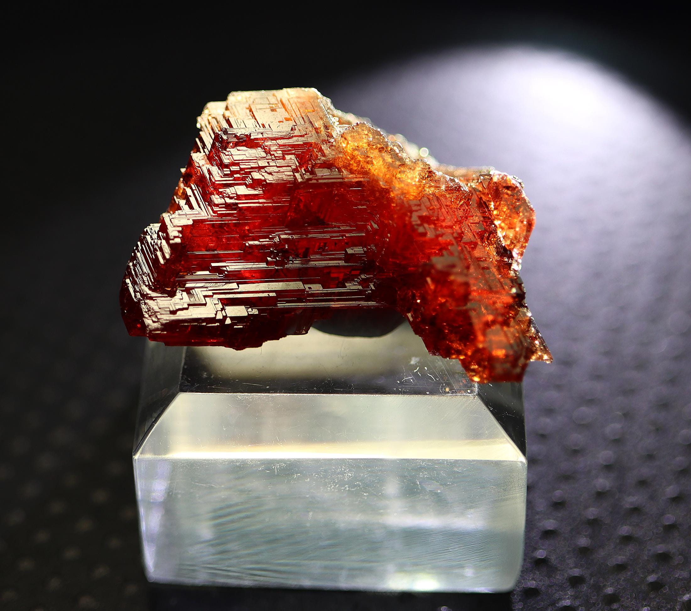 Natural Lustrous Spessartine Garnet Navegadora mine Brazil. Excellent condition all around with no damage. Appears to be a complete floater. 1.25 inch by 1 1/16 inch. 16.4 grams. Comes unmounted with a thick base included.