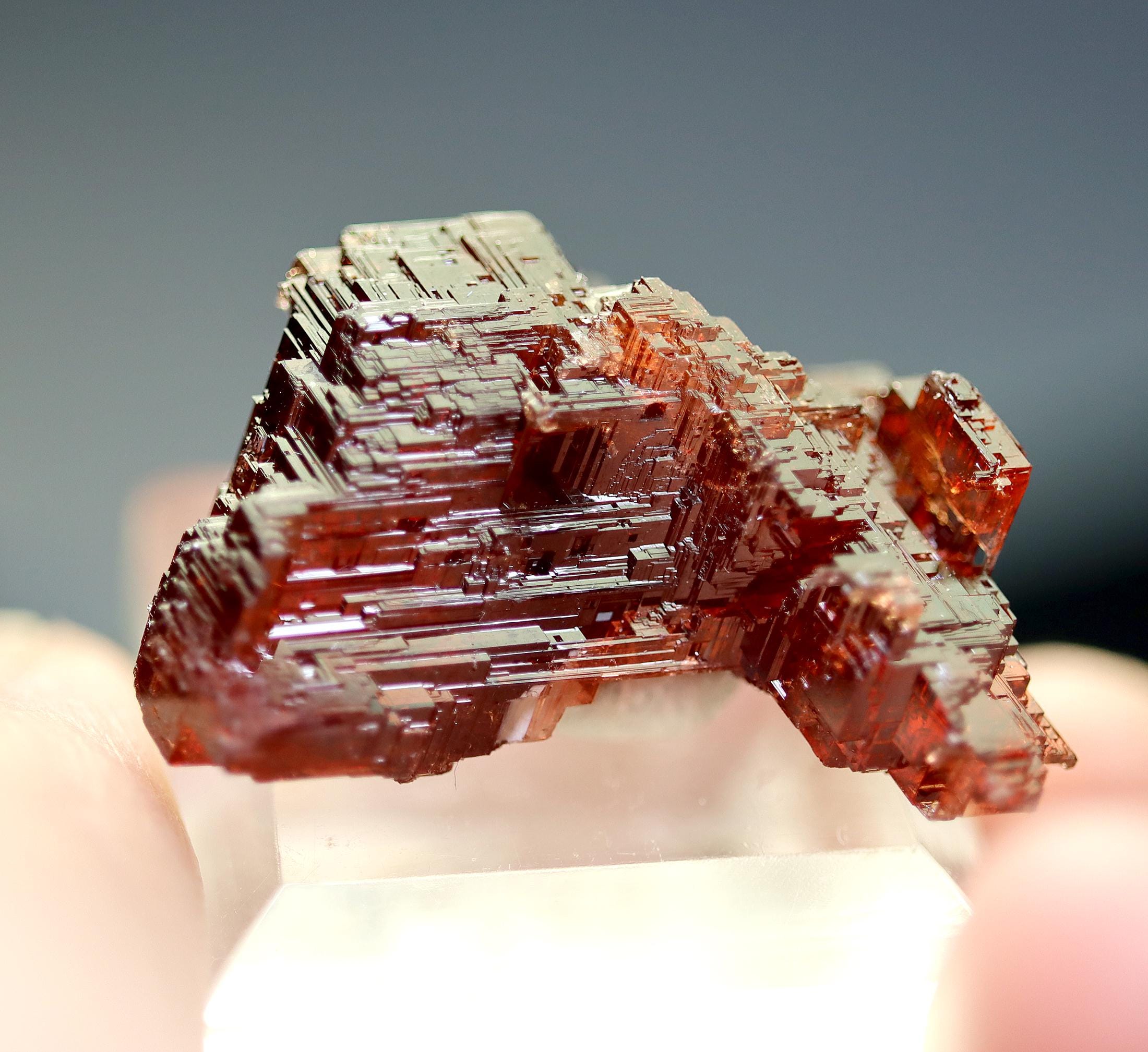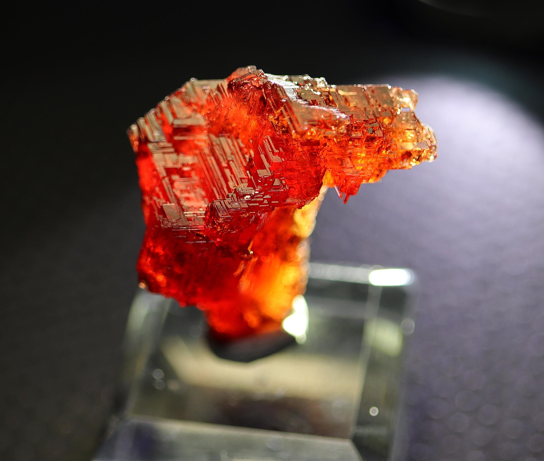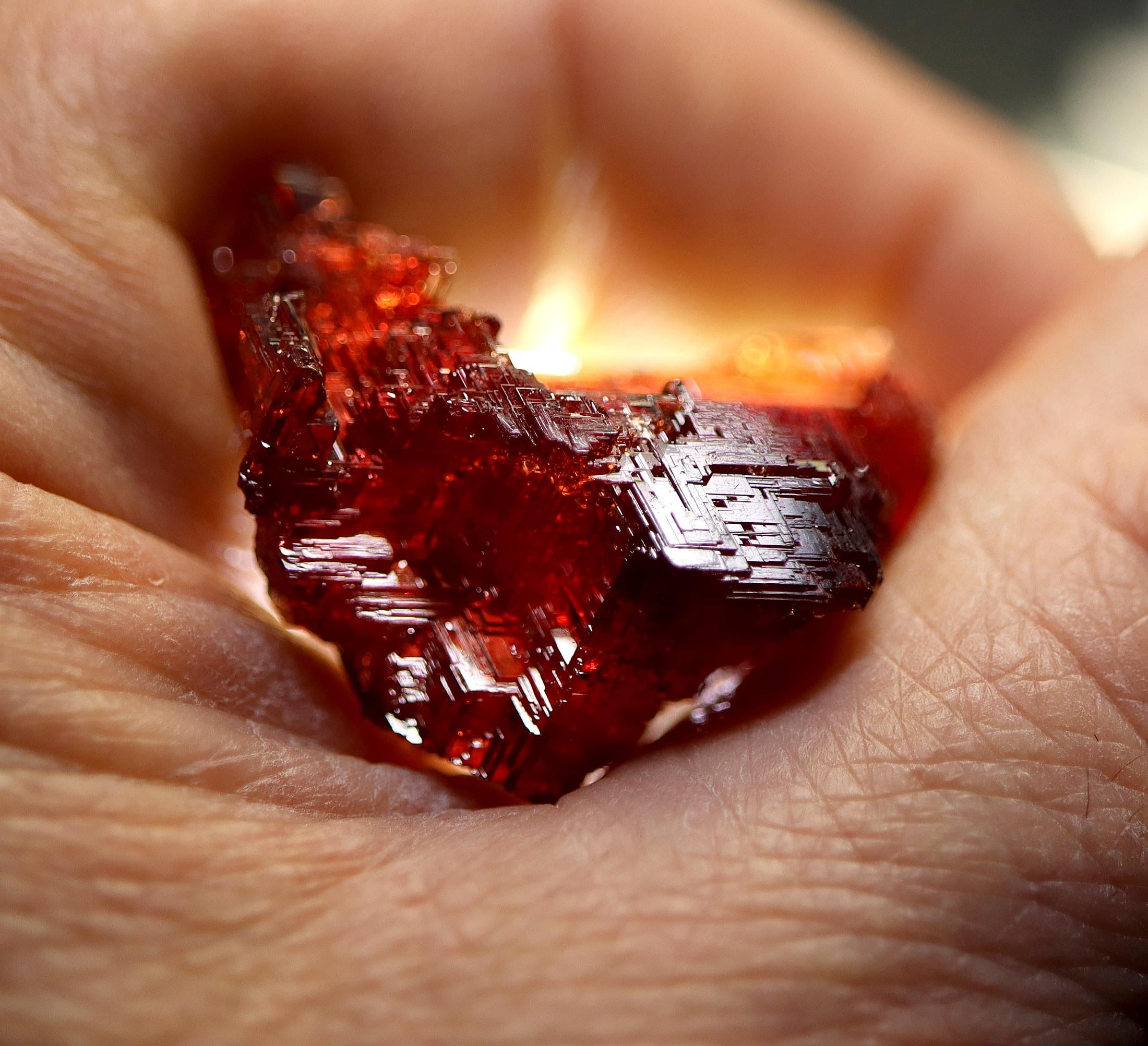 Natural Lustrous Spessartine Garnet Navegadora mine Brazil. Excellent condition all around with no damage. Appears to be a complete floater. 1.25 inch by 1 1/16 inch. 16.4 grams. Comes unmounted with a thick base included.