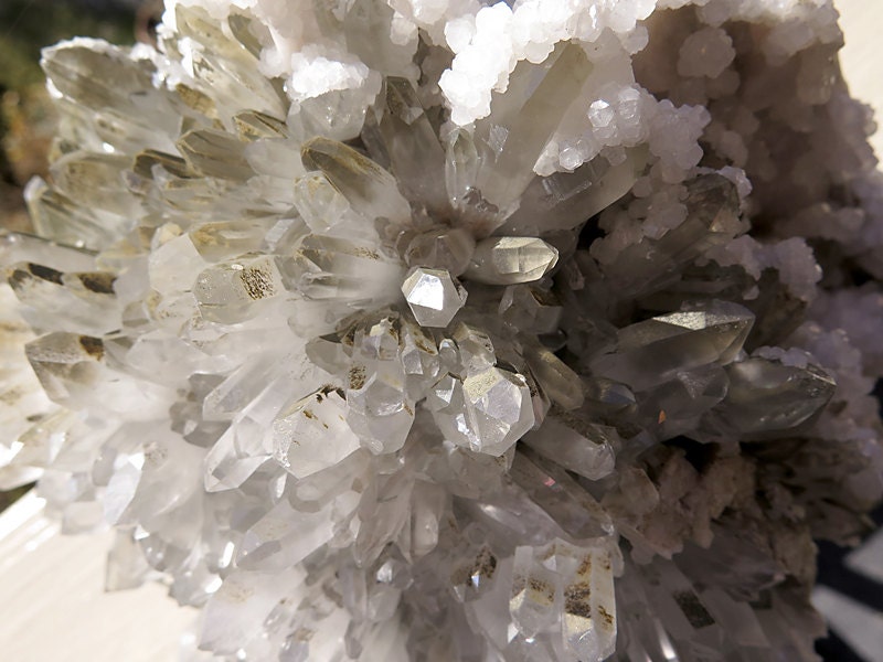 A truly wonderful "living room" display of radiating Quartz and Calcite crystals. Shows on all sides and without damage. Trepca Mine, Kosovo. Measure: 9 by 7 inches at 15.5 pounds.