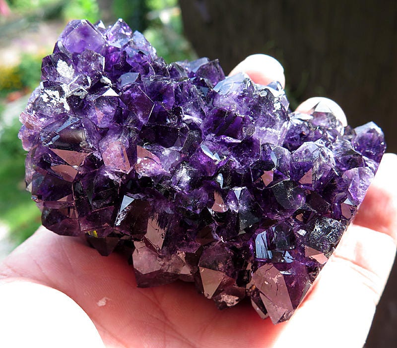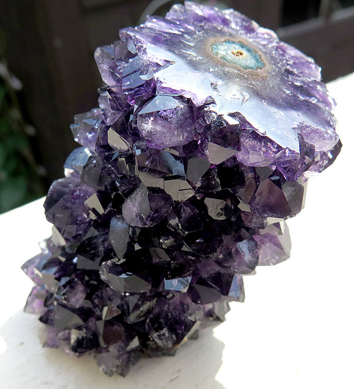 A large hand size deep purple crystal stalactite with polished ends. The piece is really nice and will stand on either end.