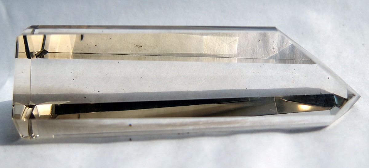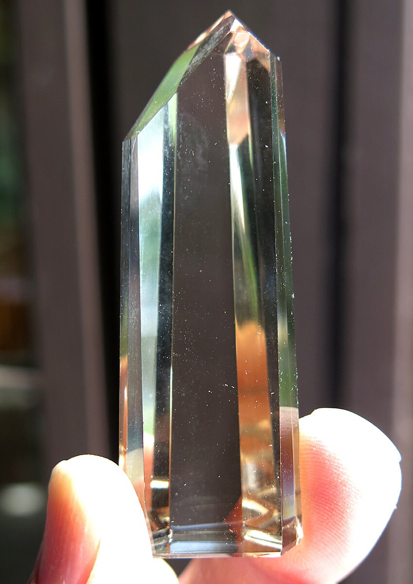 Here is a optical water clear quartz point. Holding it to a light you can see its clear as can be. Amazing material. From MG Brazil. I did the final polish work. Measure 2.75 inch.